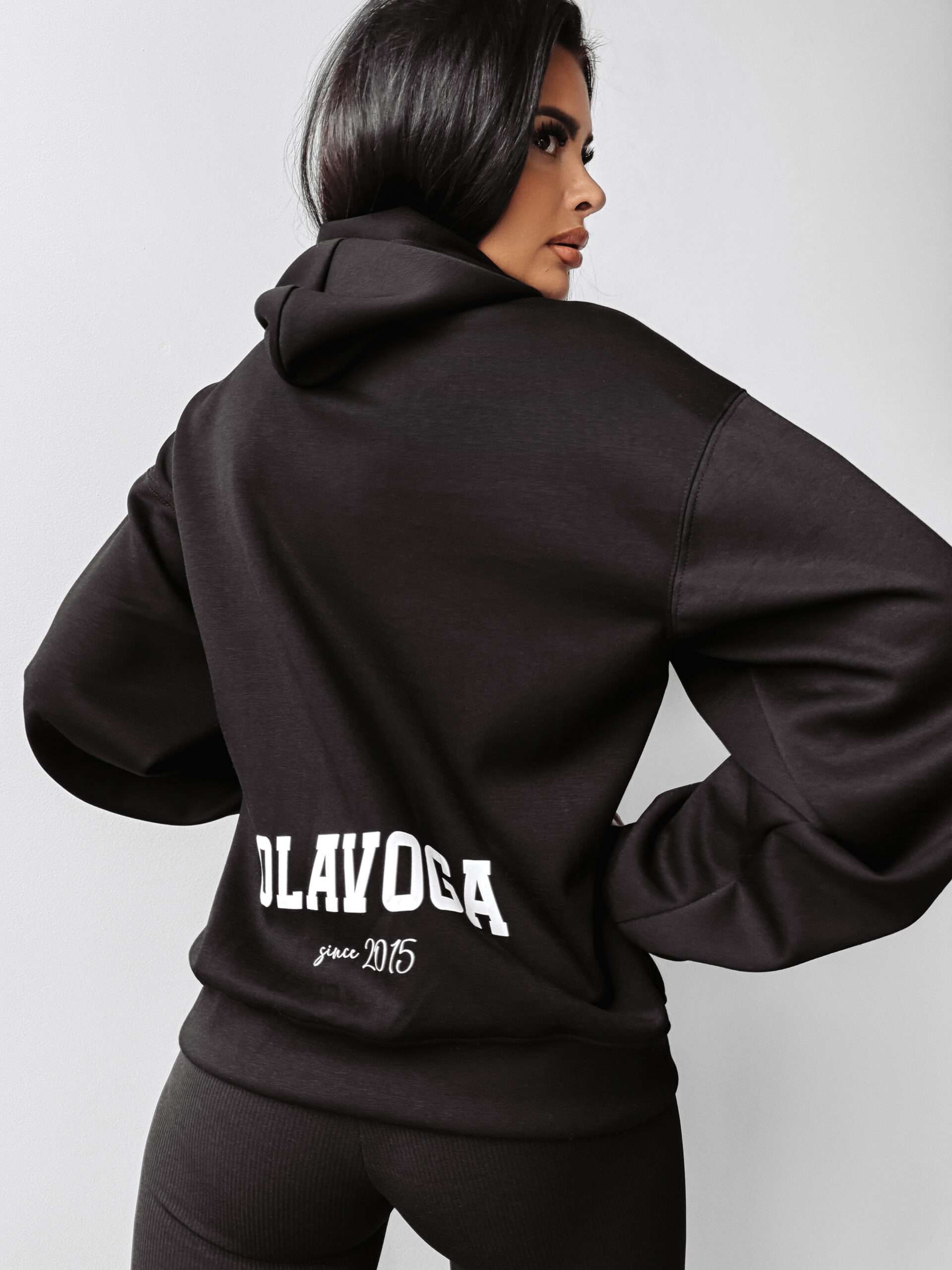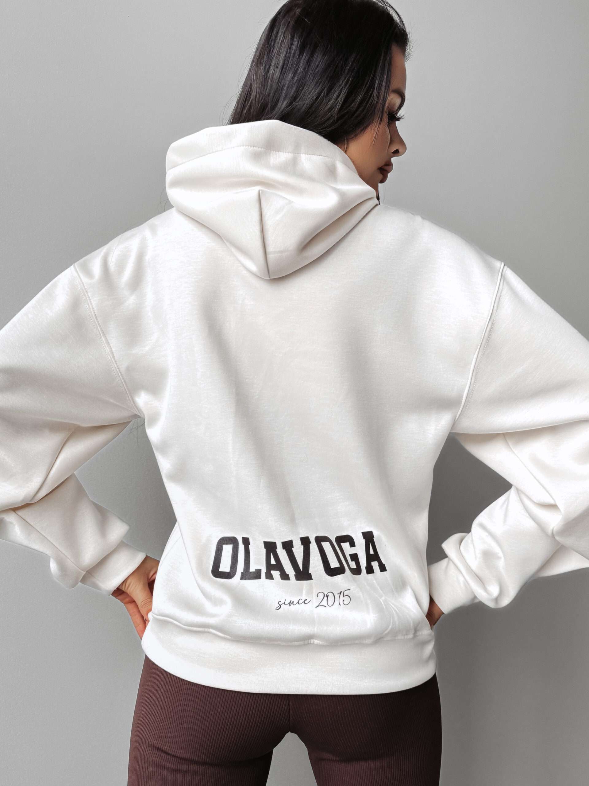 Delikatnie oversiz’owa bluza z kapturem, o dłuższym kroju. Wykonana z wysokiej jakości materiału. Na przodzie minimalistyczne logo marki OLAVOGA. Tył posiada obszerne logo brandu oraz minimalistyczny, pisany napis SINCE 2015.