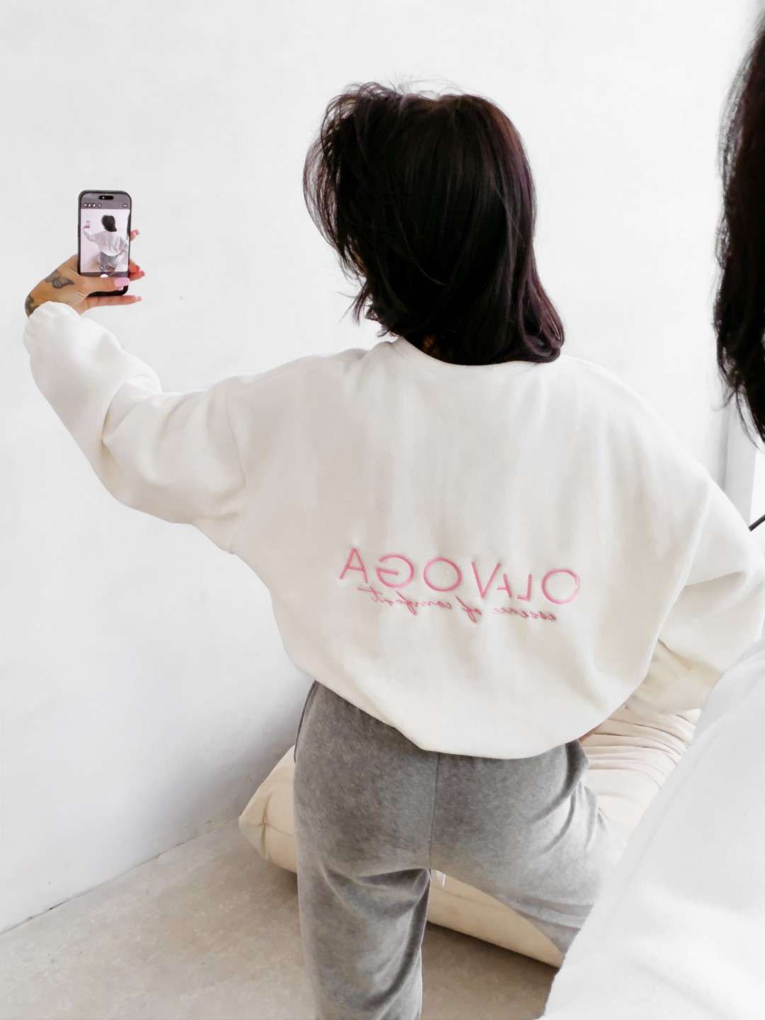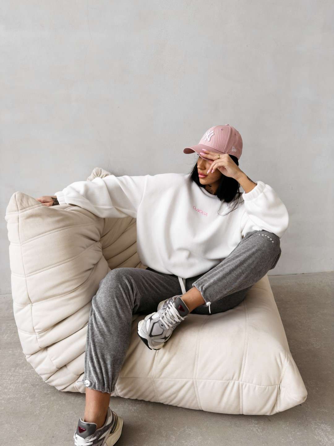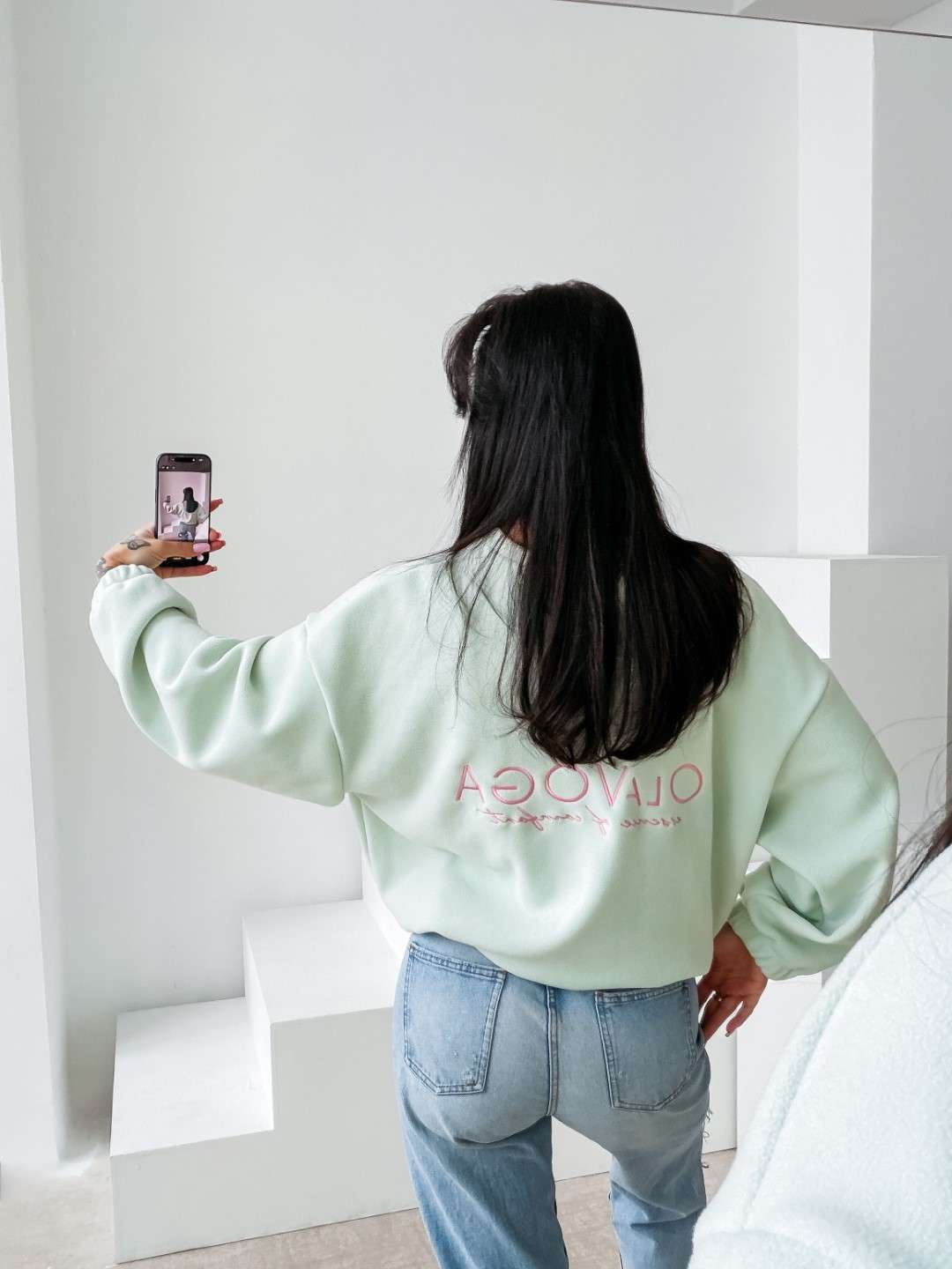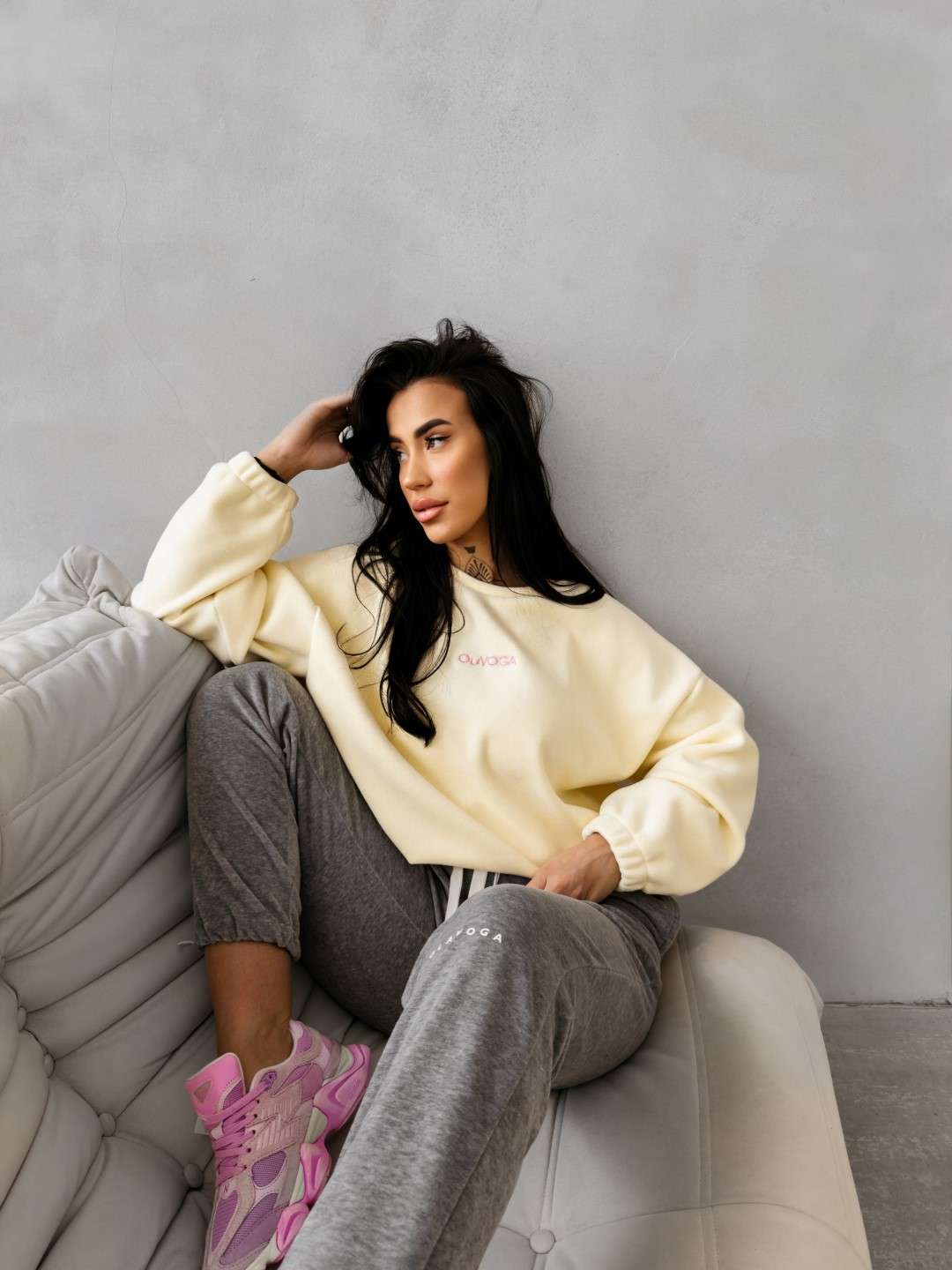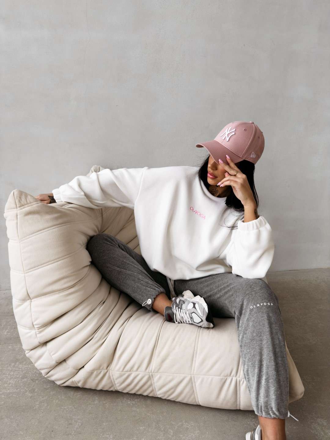 Bluza o luźnym, oversize’owym kroju wykonana z miękkiej, przyjemnej w dotyku dzianiny o delikatnej strukturze. Model z obniżoną linią ramion i szerokimi rękawami zakończonymi elastycznym ściągaczem. Dół regulowany subtelnym troczkiem. Na plecach efektowne logo marki OLAVOGA z hasłem „essence of comfort”. Z przodu minimalistyczny branding w postaci delikatnego haftu.