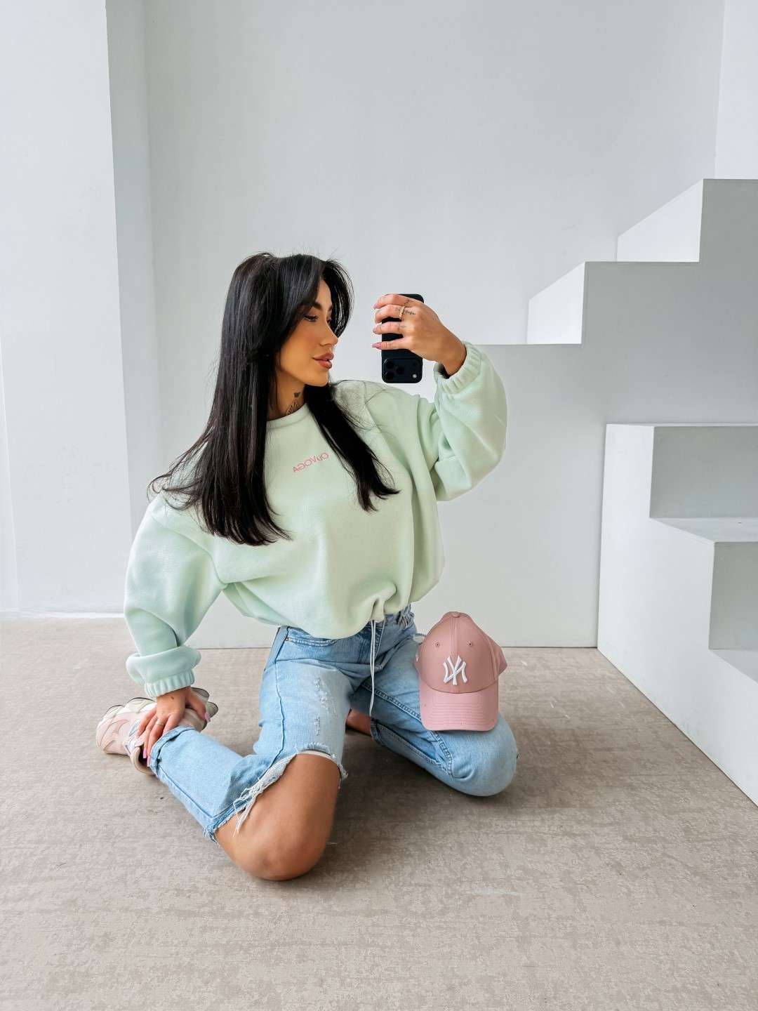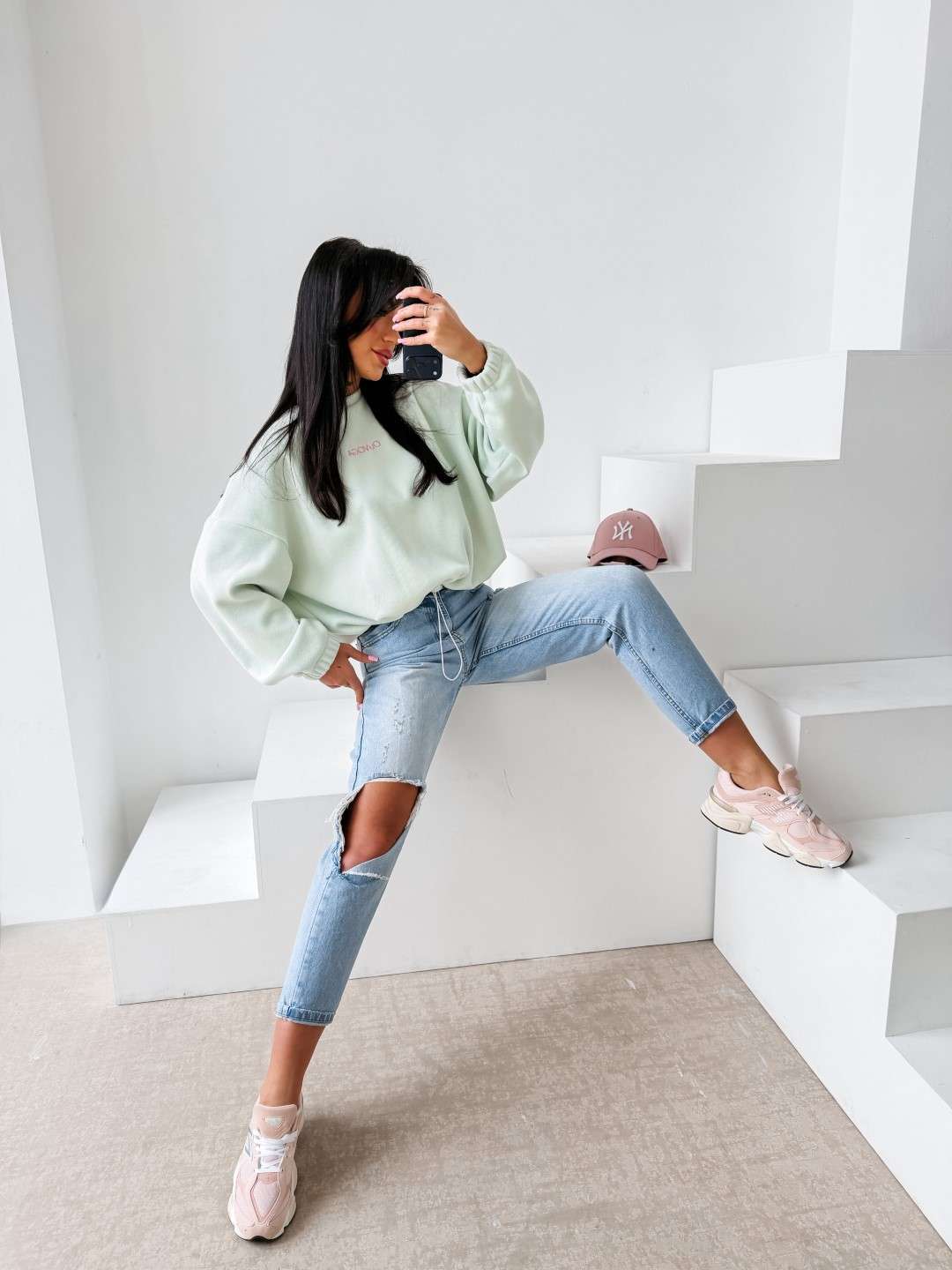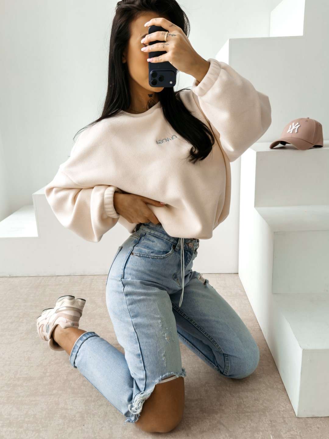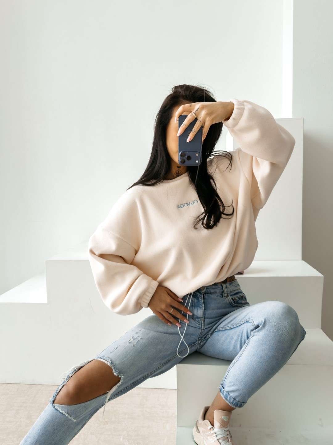 Bluza o luźnym, oversize’owym kroju wykonana z miękkiej, przyjemnej w dotyku dzianiny o delikatnej strukturze. Model z obniżoną linią ramion i szerokimi rękawami zakończonymi elastycznym ściągaczem. Dół regulowany subtelnym troczkiem. Na plecach efektowne logo marki OLAVOGA z hasłem „essence of comfort”. Z przodu minimalistyczny branding w postaci delikatnego haftu.