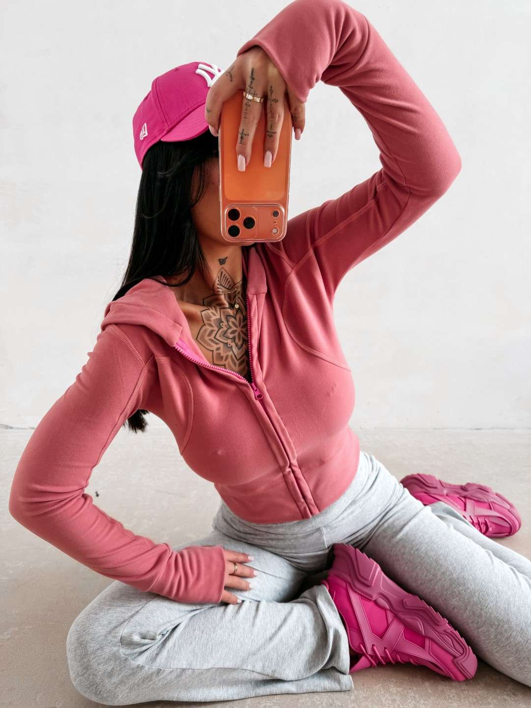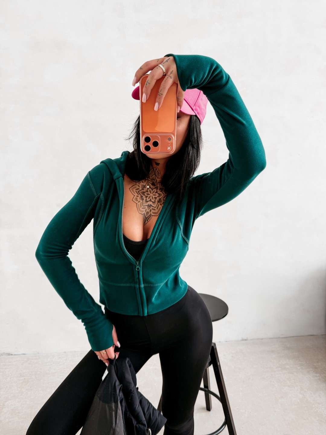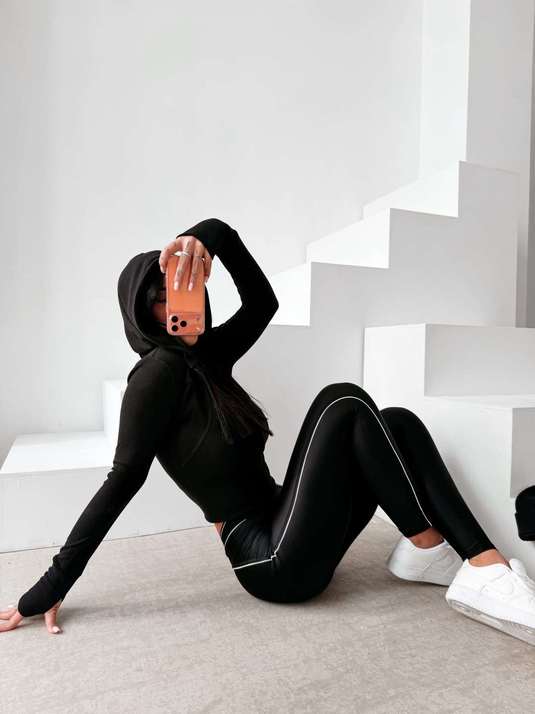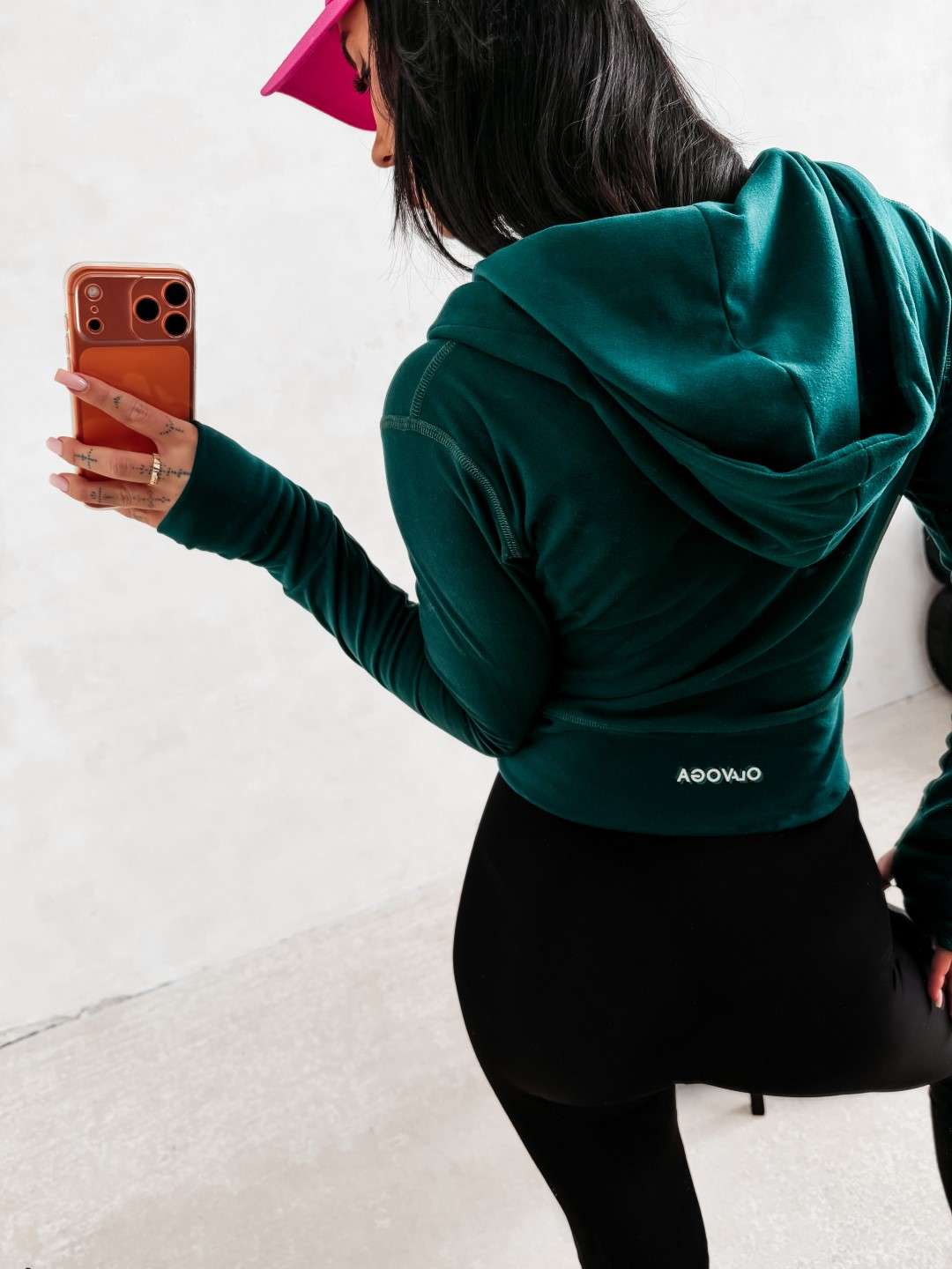 Dopasowana, rozpinana bluza z kapturem o wydłużonym kroju. Wykonana z wysokiej jakości, elastycznego i przyjemnego w dotyku materiału. Model wyróżnia się licznymi przeszyciami, które optycznie modelują sylwetkę. Rękawy z wycięciem na kciuk. Tył zdobi minimalistyczne logo marki OLAVOGA.