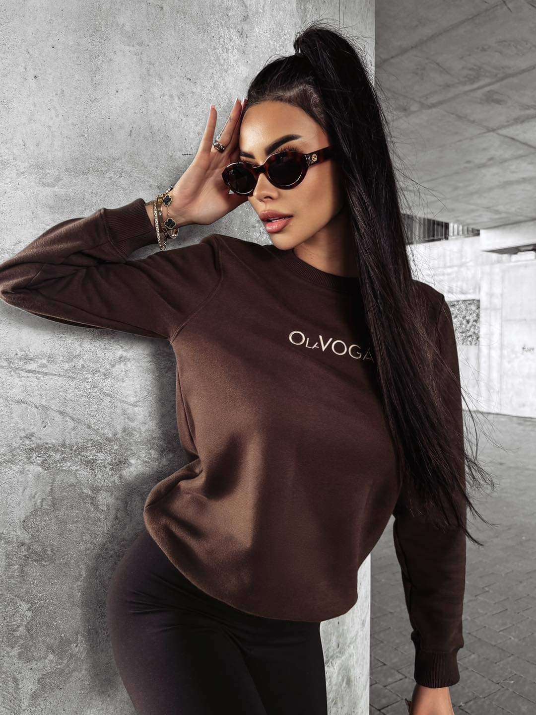 Na brzegach prążkowane ściągacze. Na przodzie obszerny haft z logo marki OLAVOGA.