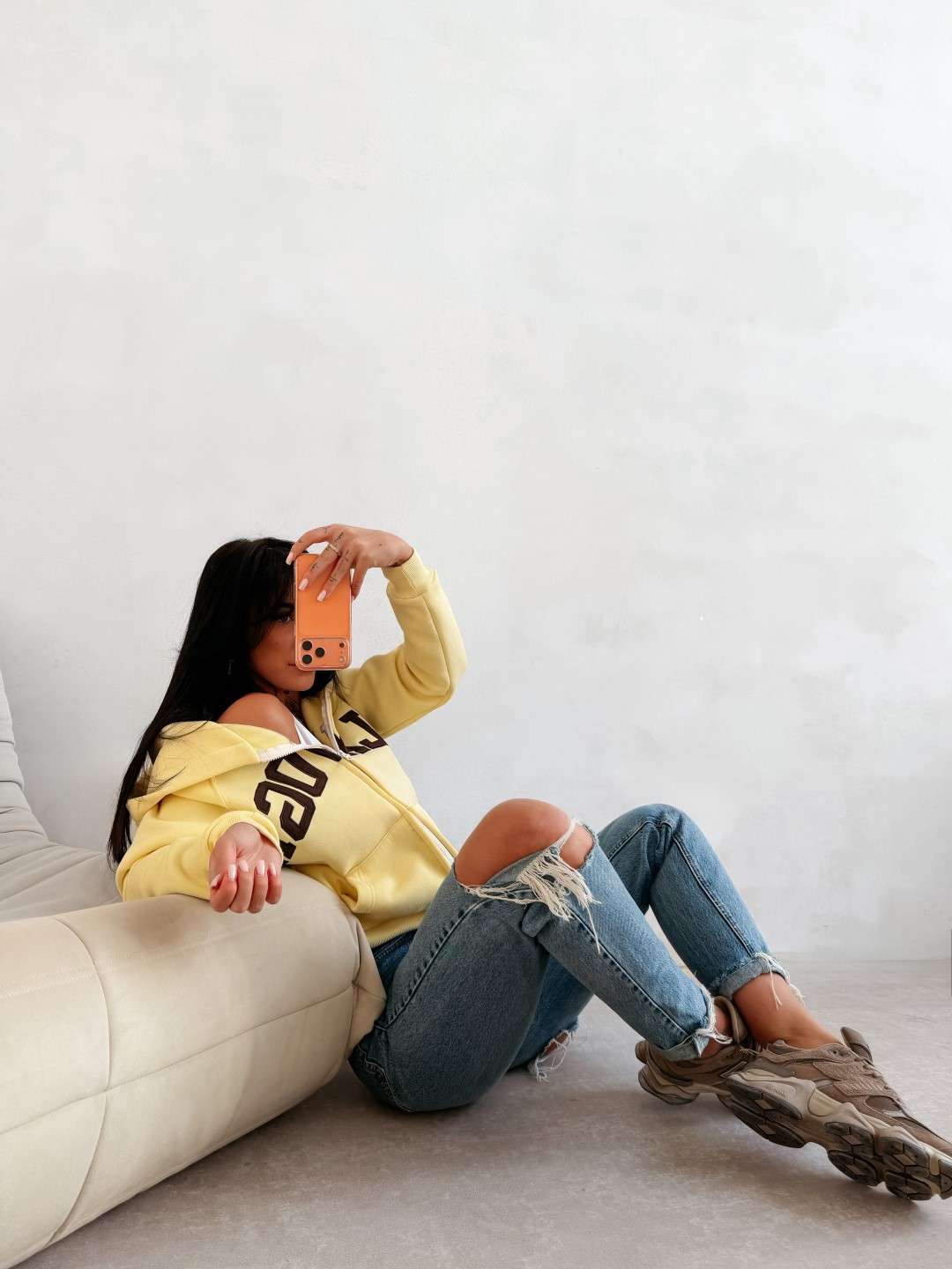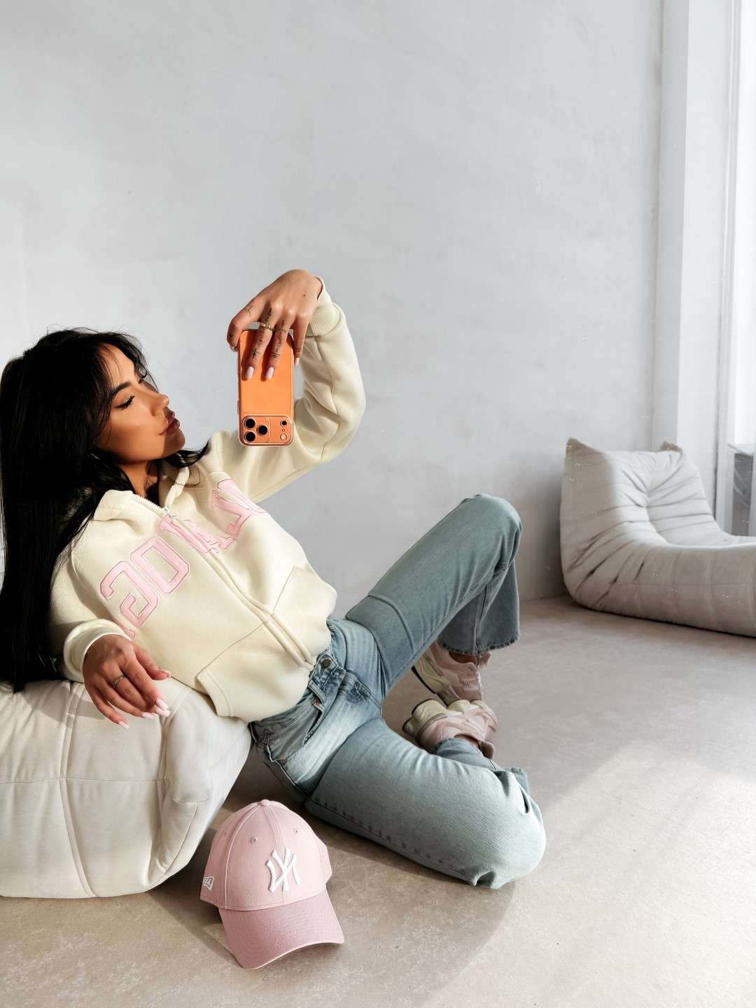 Casualowa bluza z kapturem o swobodnym, nowoczesnym kroju. Wykonana z wysokiej jakości, miękkiej w dotyku dzianiny bawełnianej. Na brzegach zastosowano elastyczne, prążkowane ściągacze. Funkcjonalne kieszenie po bokach. Na przodzie obszerny, starannie wykonany haft z logo marki OLAVOGA. Idealna propozycja dla Niej i dla Niego.