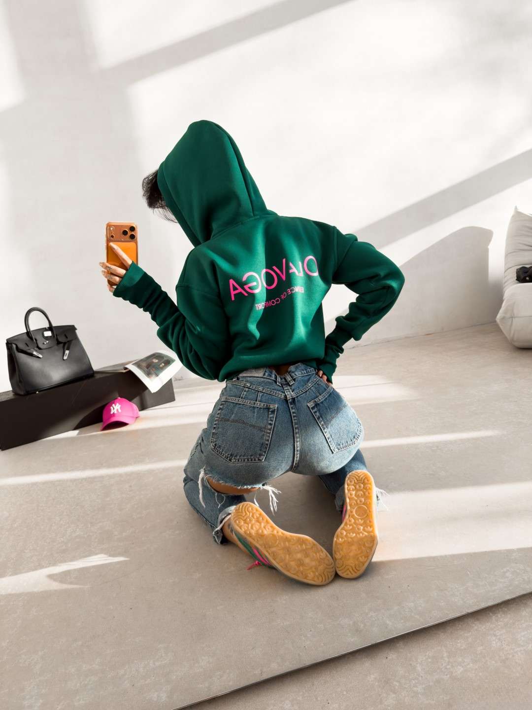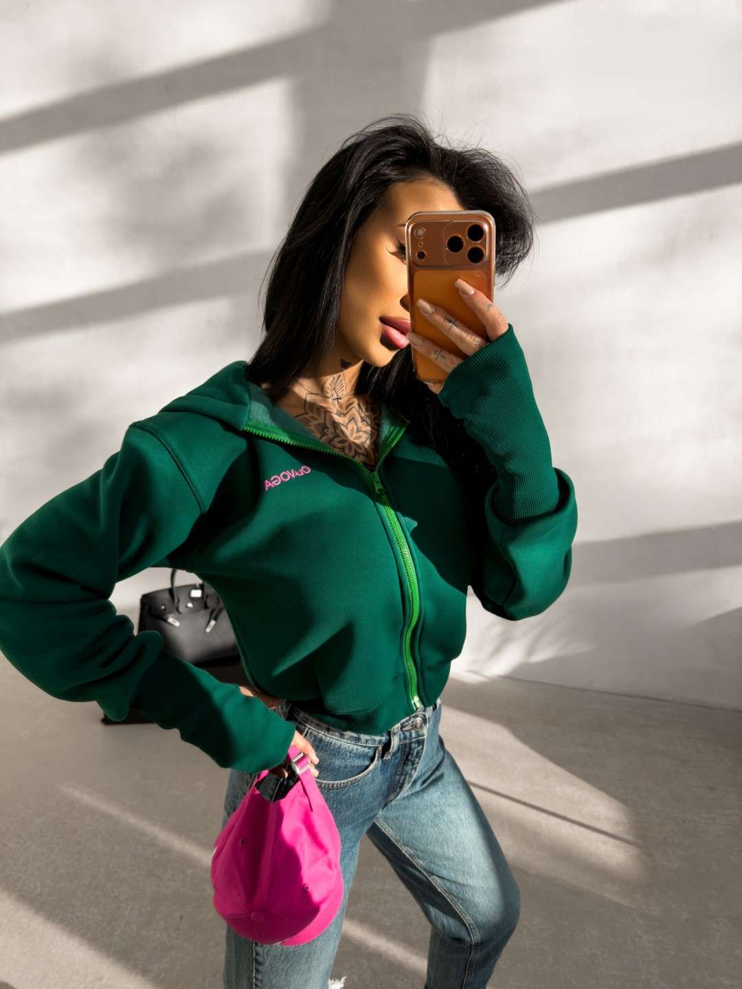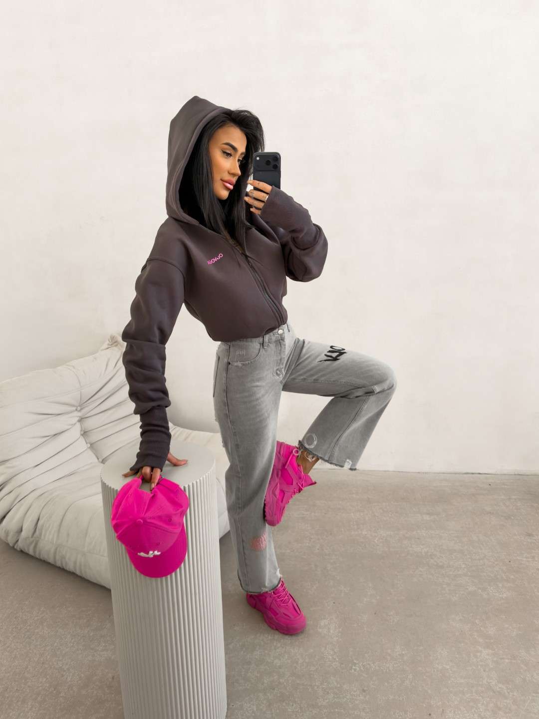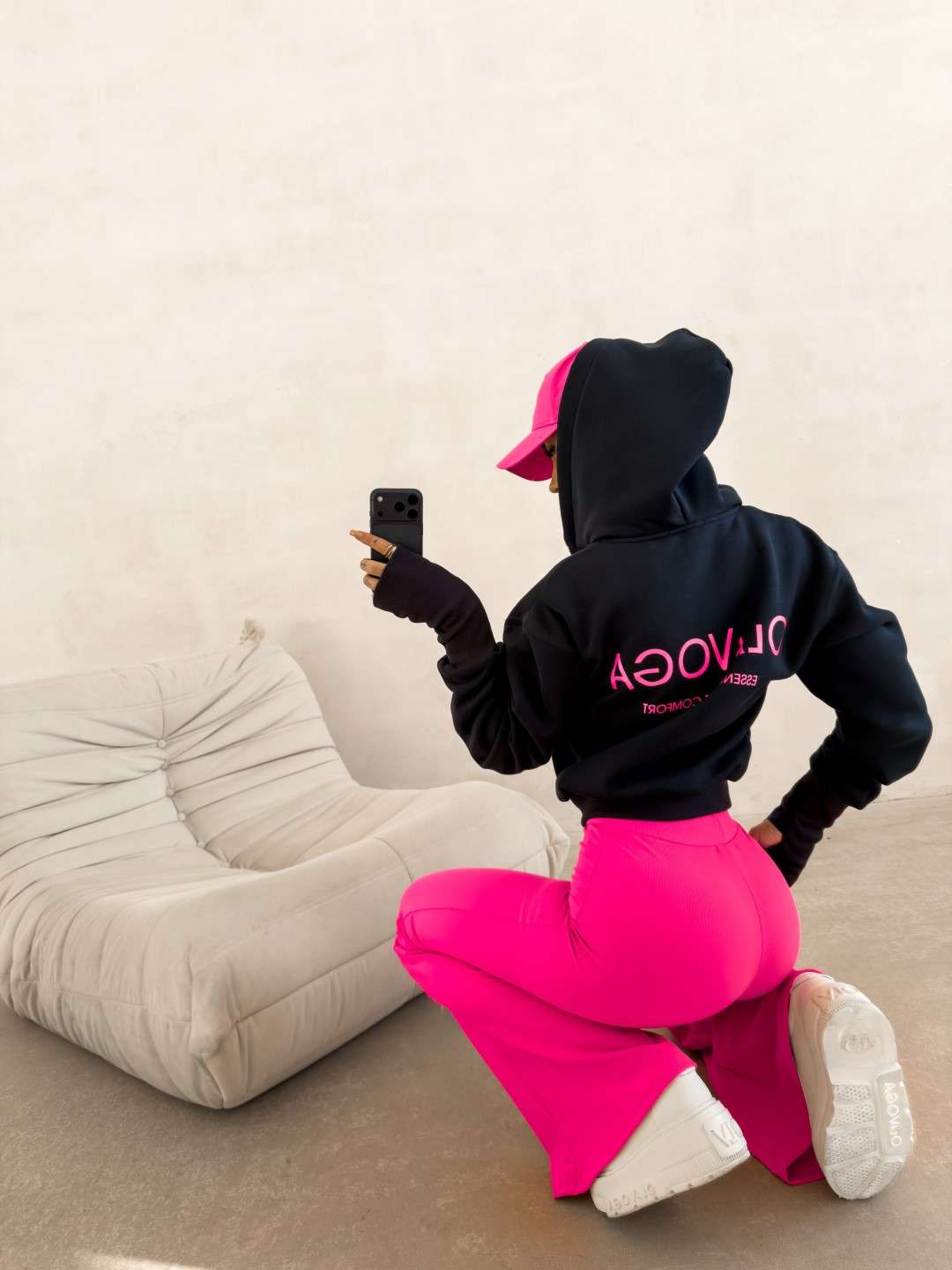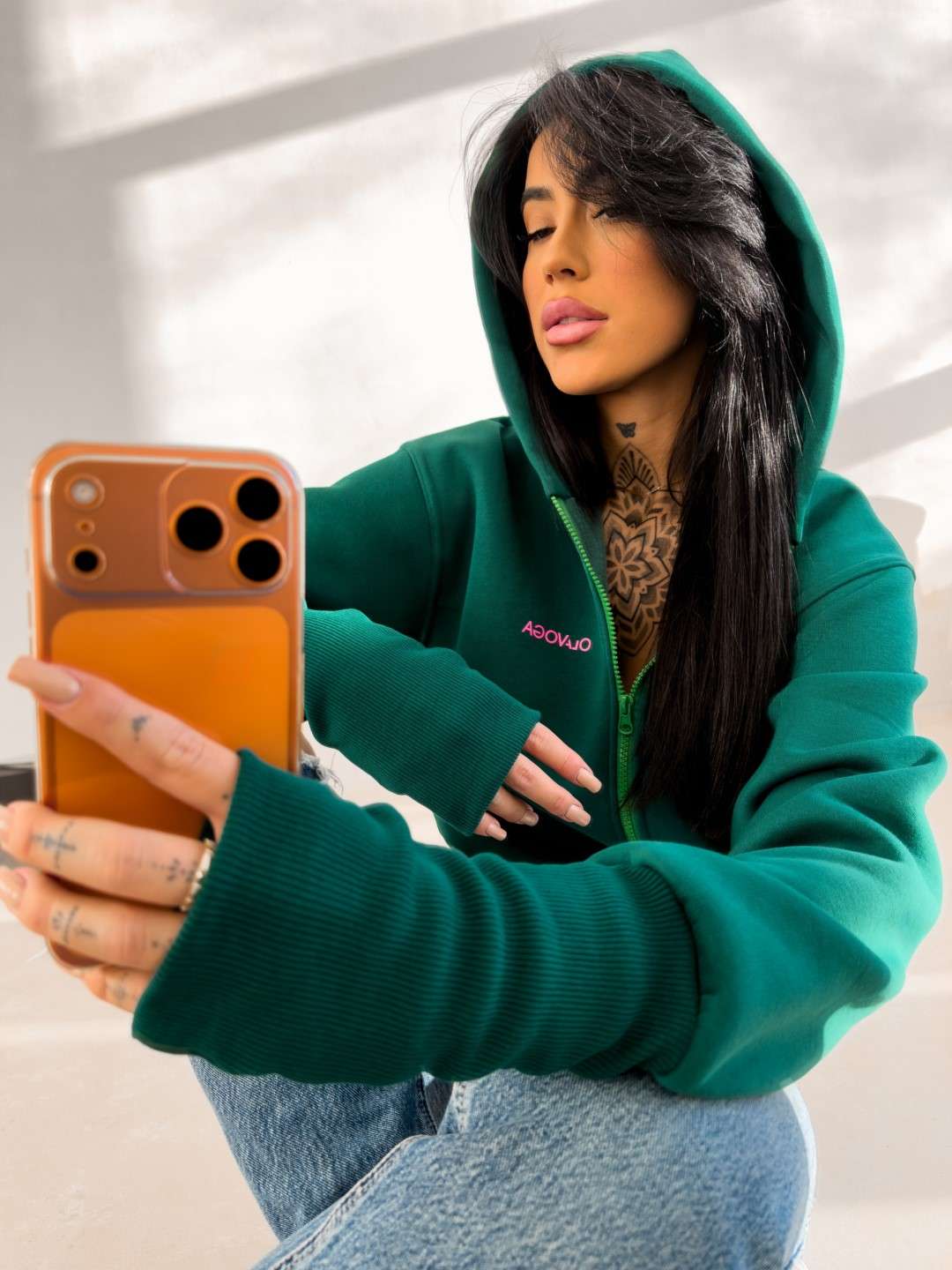 Casualowa bluza wykonana z miękkiej, elastycznej dzianiny o gładkiej, jednolitej strukturze. Model z kapturem, zapinany na suwak, o klasycznym kroju. Bluza z długim rękawem, wykończonym elastycznymi ściągaczami z wycięciem na kciuk. Dół wykończony ściągaczem. Na przodzie subtelne logo marki OLAVOGA w kontrastowym kolorze. Na plecach większy nadruk z logo brandu oraz hasłem Essence of Comfort.
