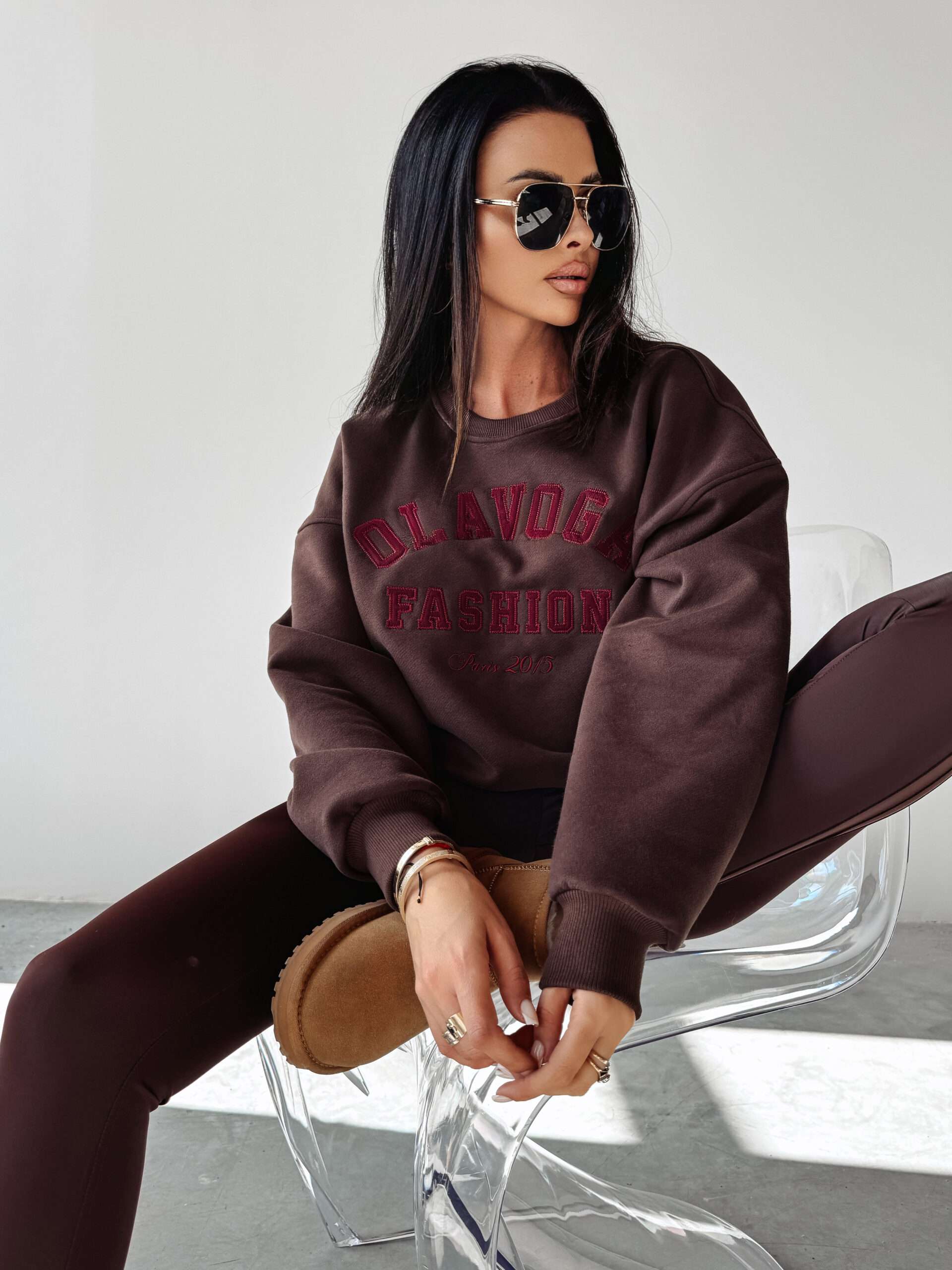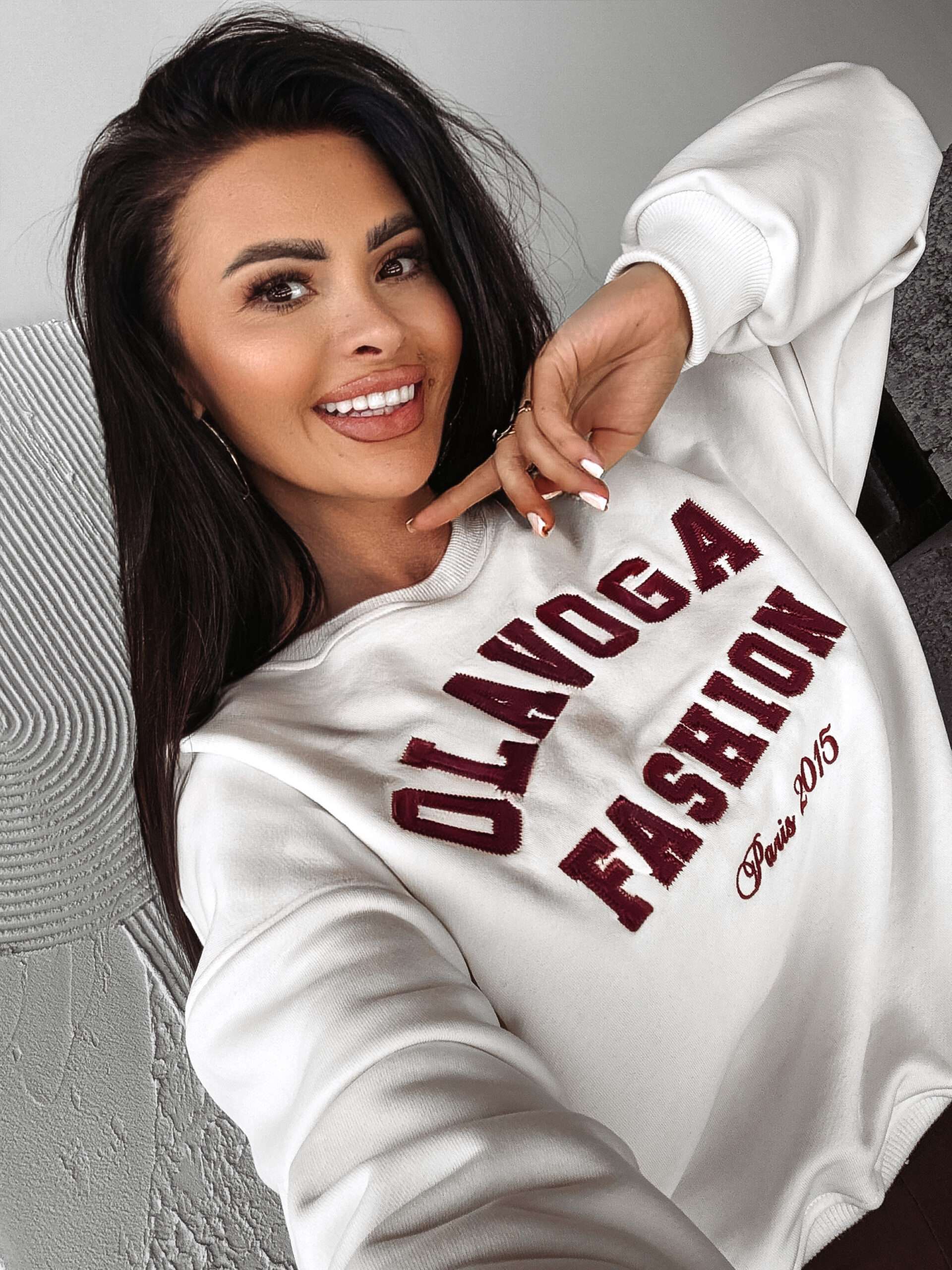 Ocieplana, delikatnie oversiz’owa bluza bez kaptura. Wykonana z wysokiej jakości bawełnianego materiału. Posiada prążkowane ściągacze. Na przodzie obszerne logo markiOLAVOGA z napisem FASHION oraz minimalistyczny, pisany haft PARIS 2015.