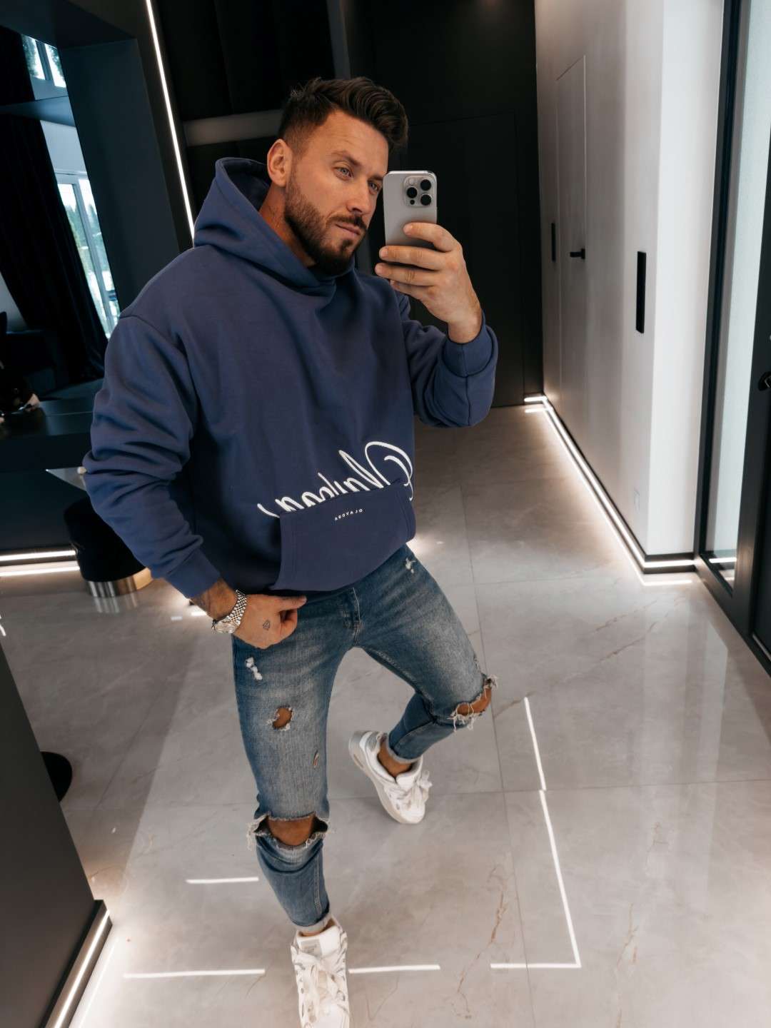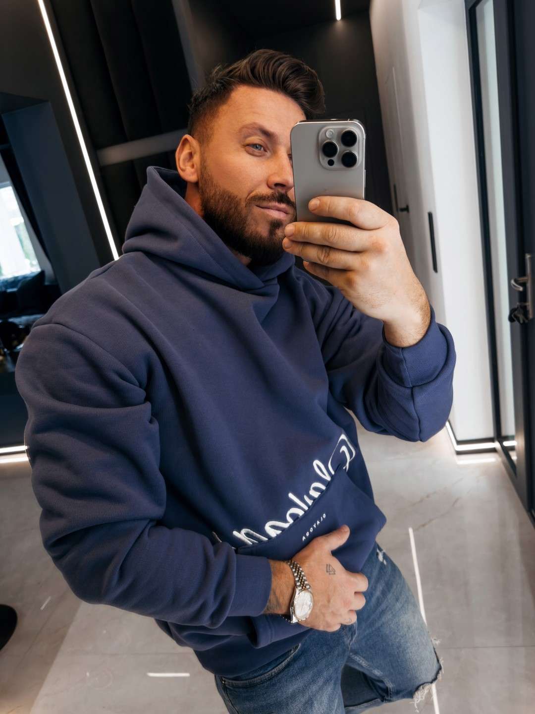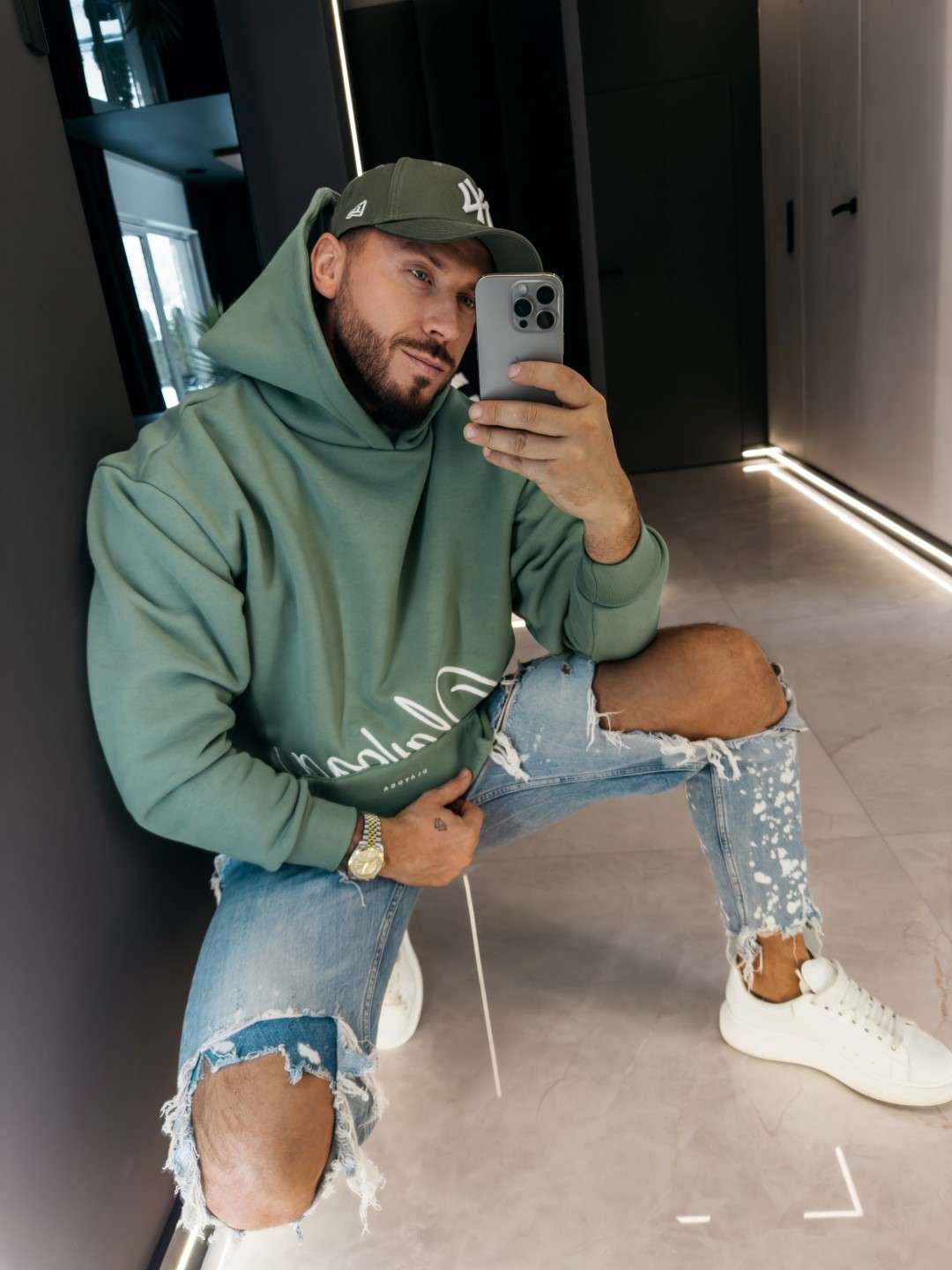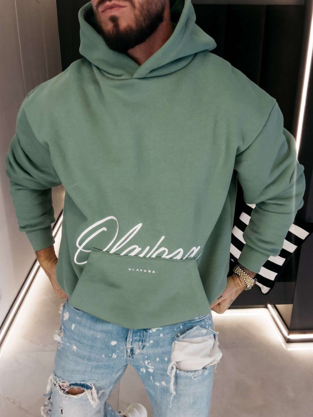 Bluza z kapturem wykonana z miękkiej, komfortowej dzianiny o swobodnym kroju. Z przodu ozdobna aplikacja z napisem oraz kieszeń kangurka, z tyłu minimalistyczne wykończenie z subtelnym detalem na kapturze. Dół i rękawy zakończone elastycznymi ściągaczami. Ważne aspekty: luźny, komfortowy krój, kaptur, miękka dzianina premium, ozdobna aplikacja z przodu, kieszeń kangurka, detal na kapturze, rękawy zakończone ściągaczem.