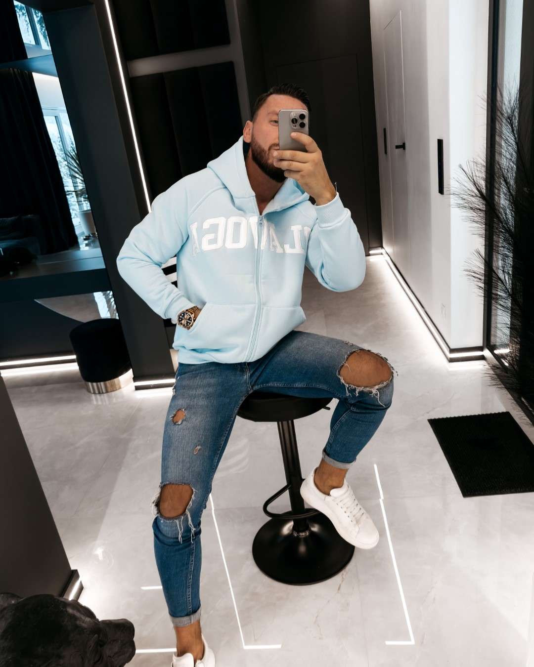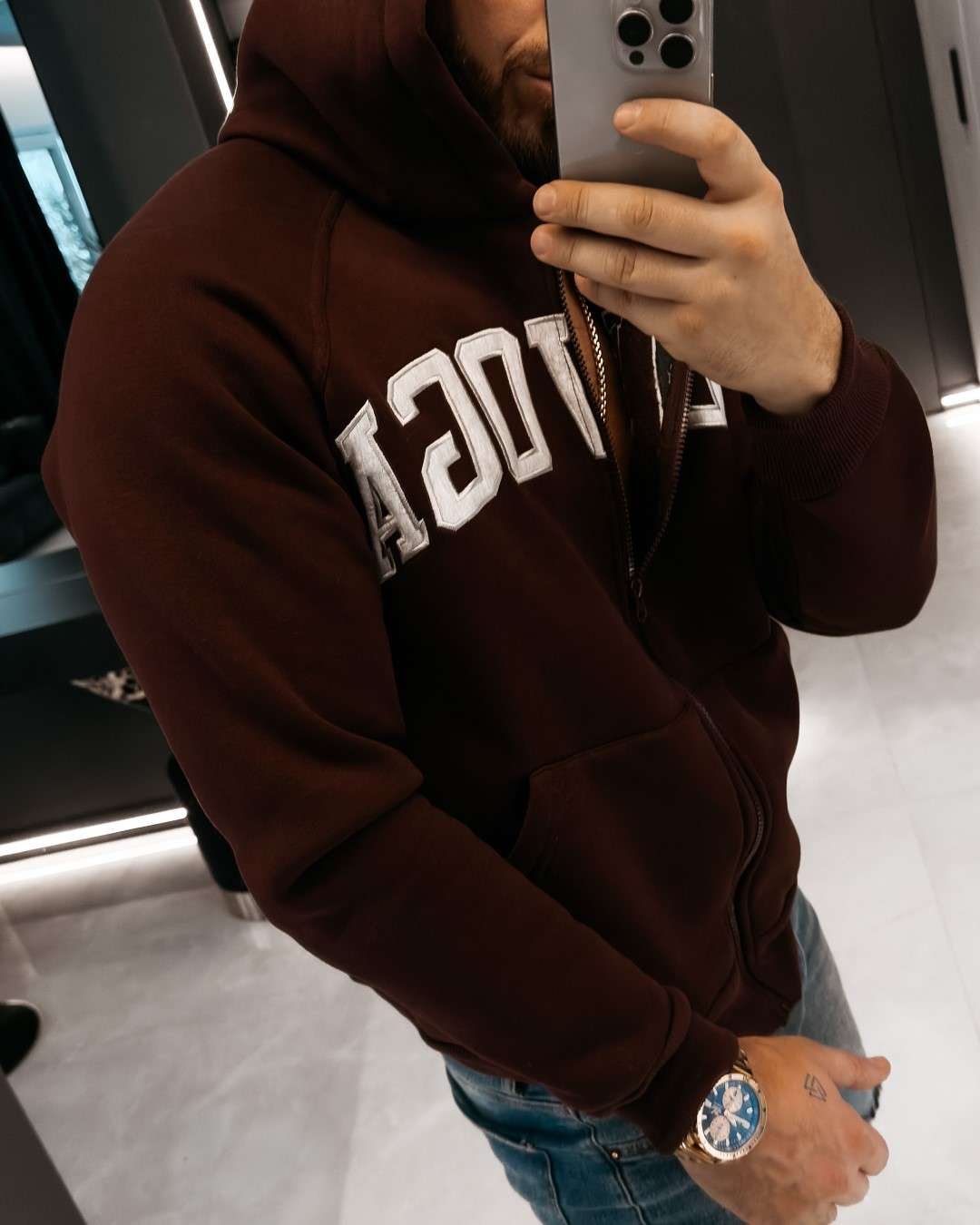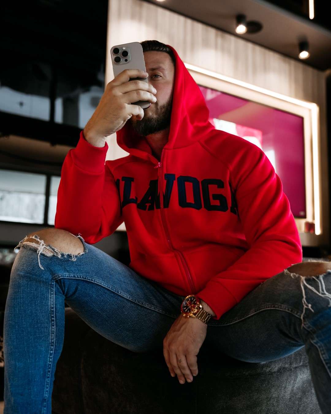 Casualowa bluza z kapturem o swobodnym, nowoczesnym kroju. Wykonana z wysokiej jakości, miękkiej w dotyku dzianiny bawełnianej. Na brzegach zastosowano elastyczne, prążkowane ściągacze. Funkcjonalne kieszenie po bokach. Na przodzie obszerny, starannie wykonany haft z logo marki OLAVOGA. Idealna propozycja dla Niej i dla Niego.