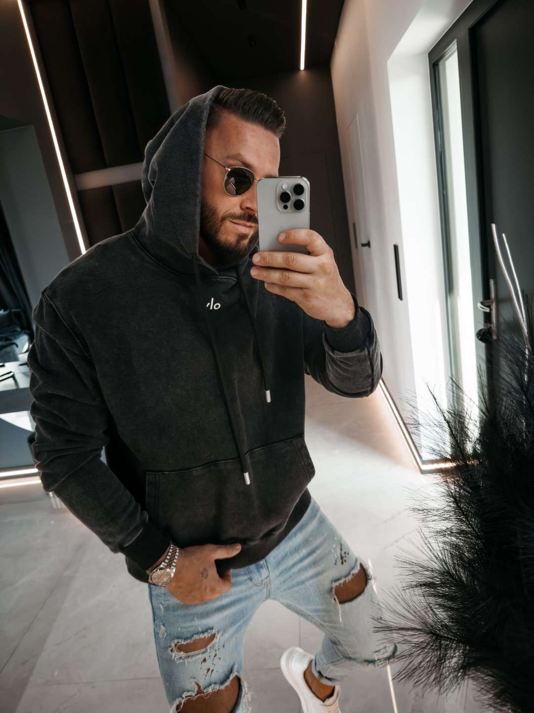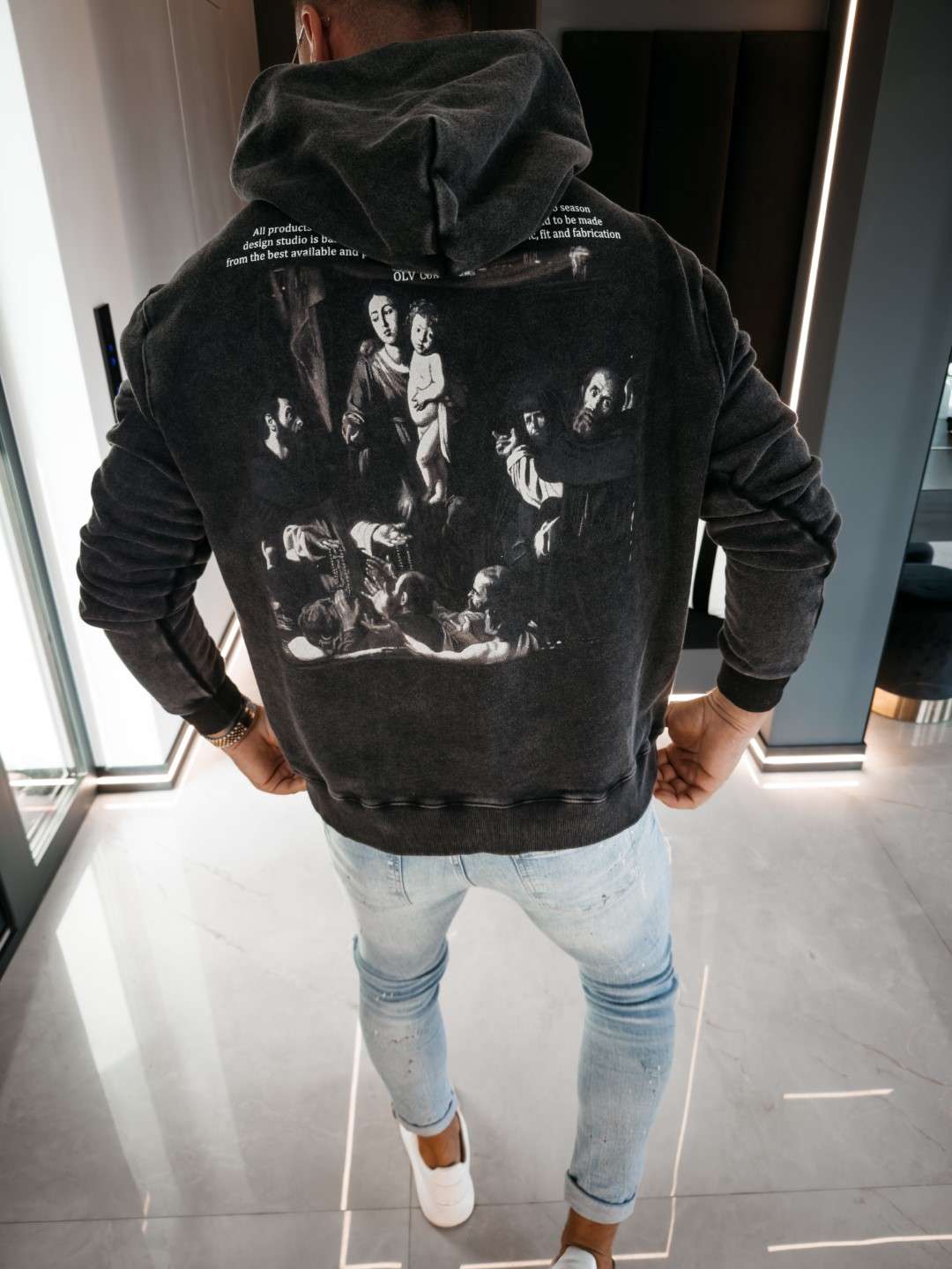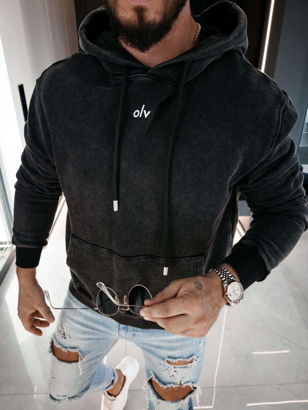 Męska bluza z długim rękawem i okrągłym dekoltem. Rękawy oraz dół produktu zakończone ściągaczem. Kaptur ze sznurkiem ściągającym. Na przodzie subtelne logo. Z tyłu nadruk graficzny.