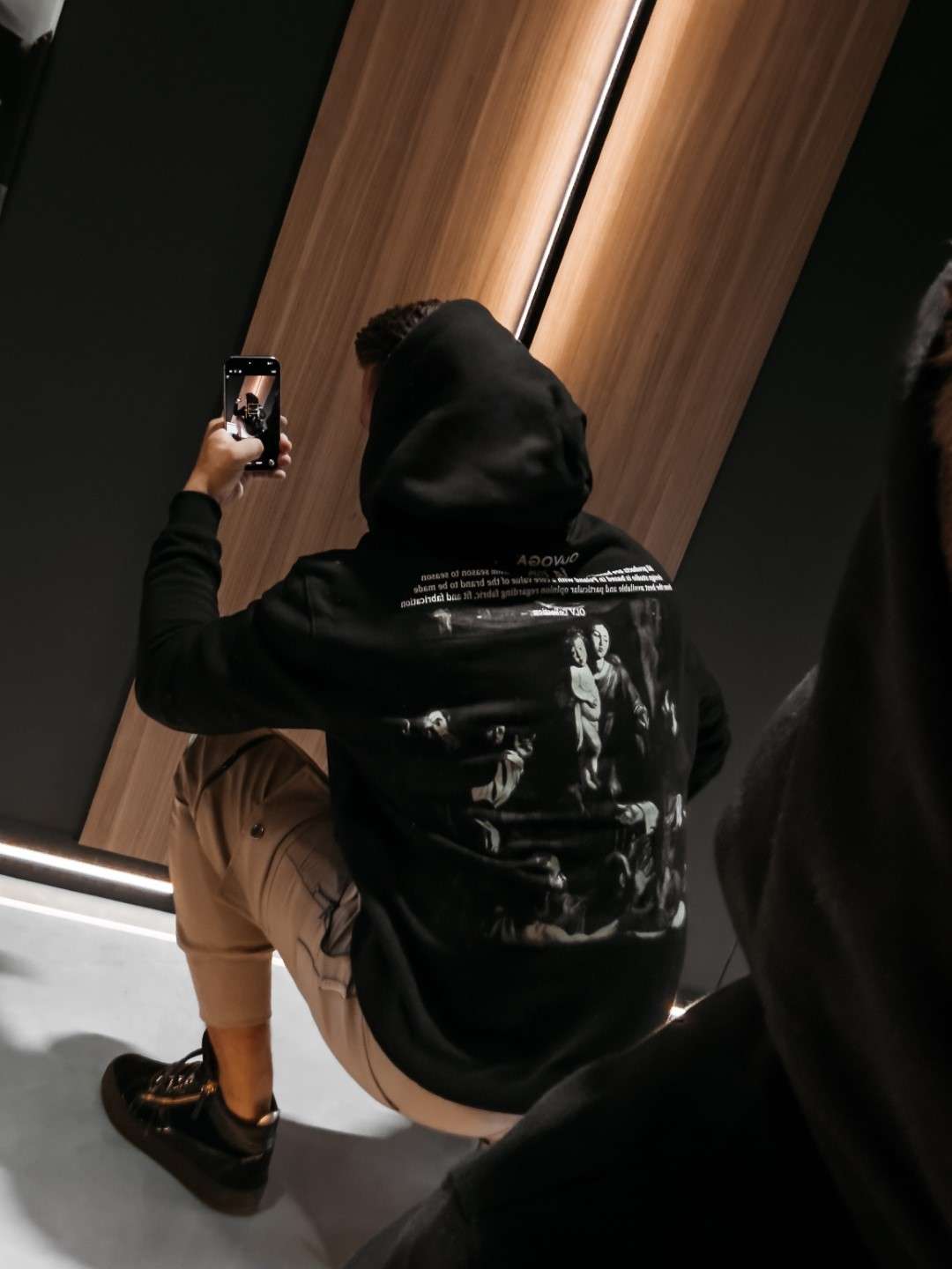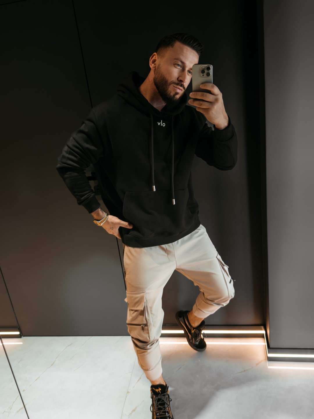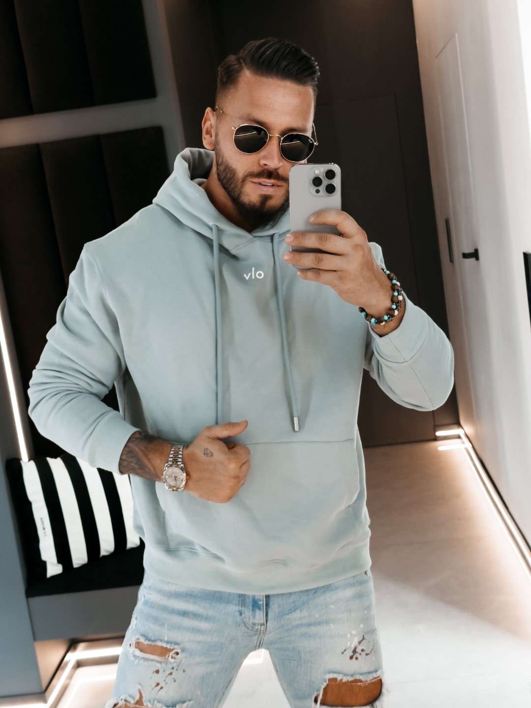 Męska bluza z długim rękawem i okrągłym dekoltem. Rękawy oraz dół produktu zakończone ściągaczem. Kaptur ze sznurkiem ściągającym. Na przodzie subtelne logo. Z tyłu nadruk graficzny.