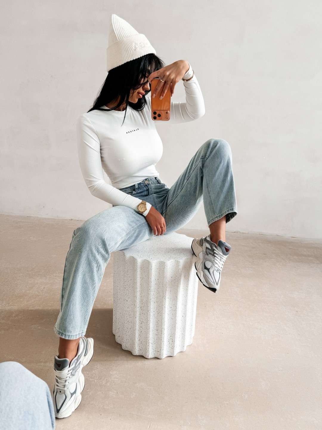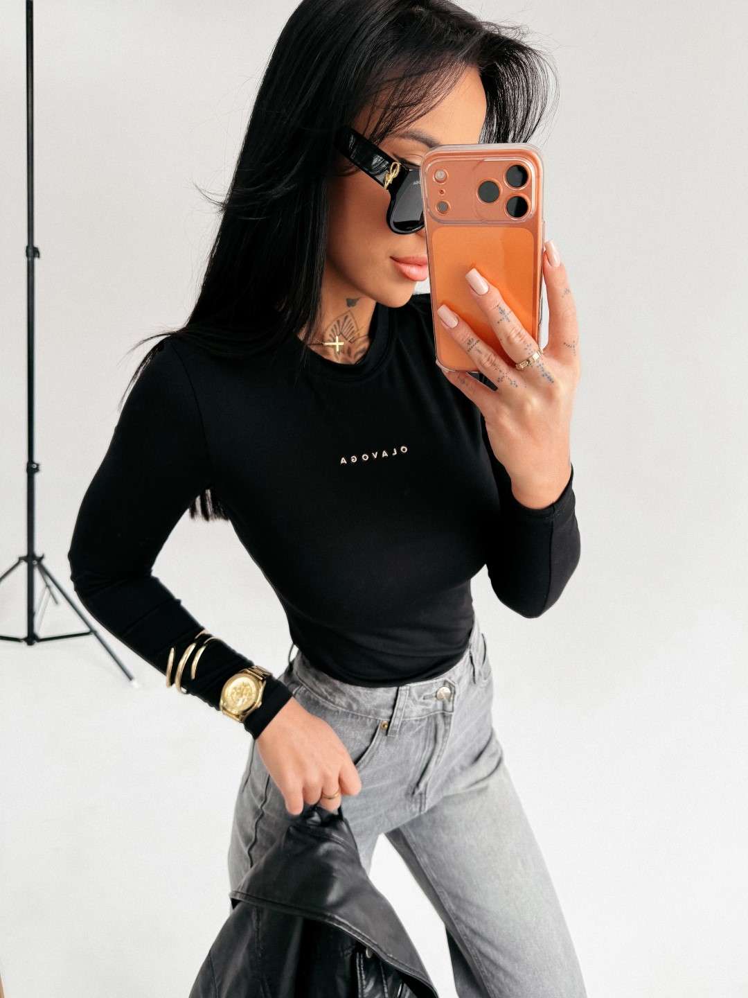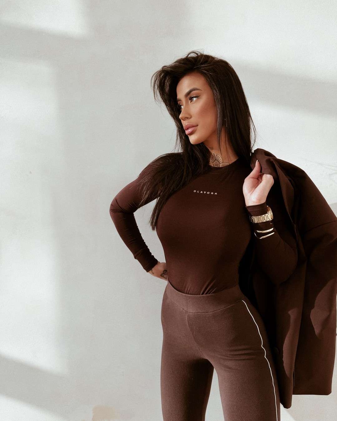 Idealnie przylegająca bluzka z długim rękawem, o prostym kroju. Wykonana z miękkiego, elastycznego materiału z domieszką wiskozy. Na przodzie delikatne, haftowane logo marki OLAVOGA w kontrastowym kolorze.