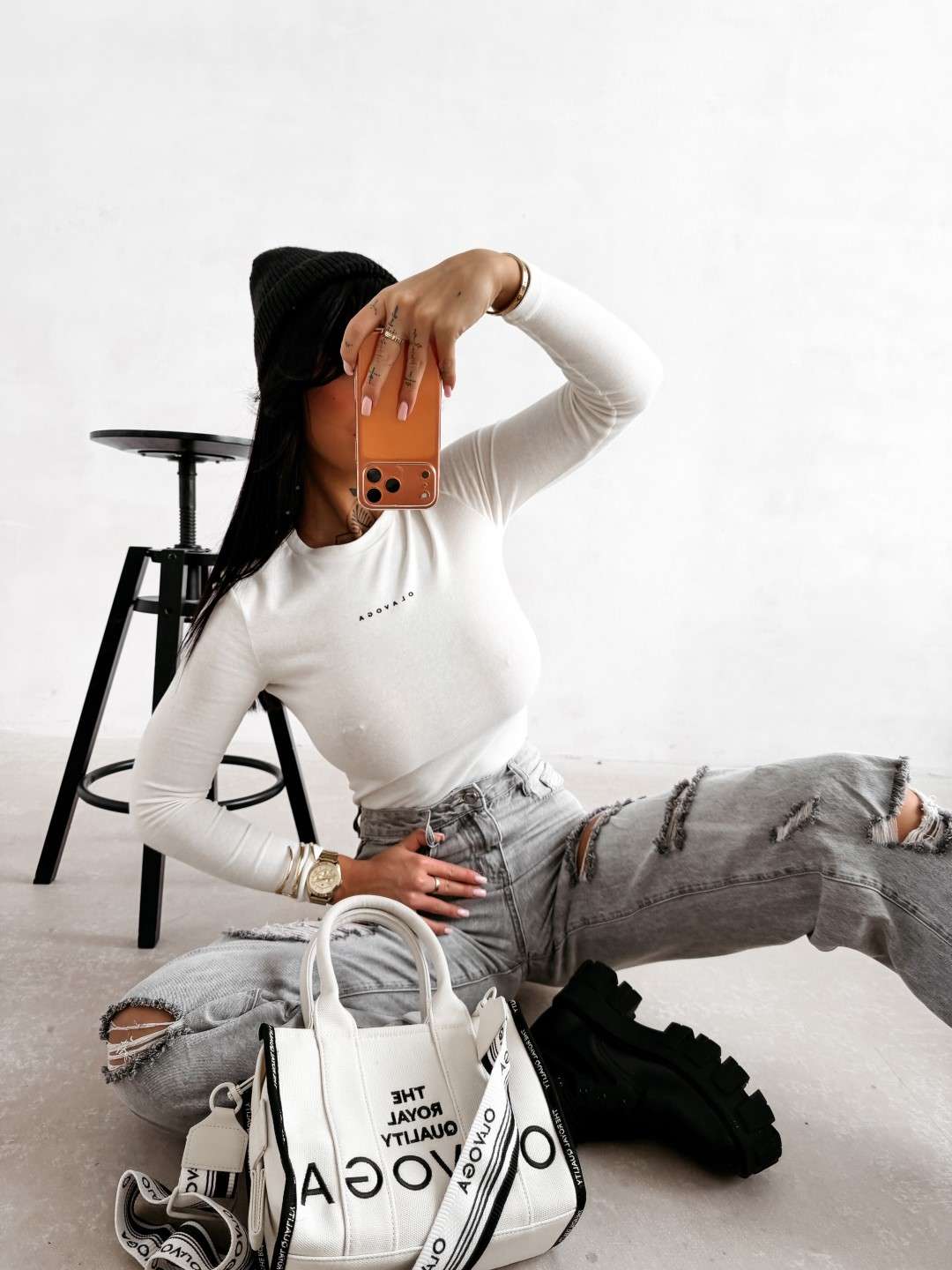Idealnie dopasowana bluzka z długim rękawem. Wykonana z wysokiej jakości, elastycznego materiału,. Na przodzie subtelne, minimalistyczne logo marki OLAVOGA.