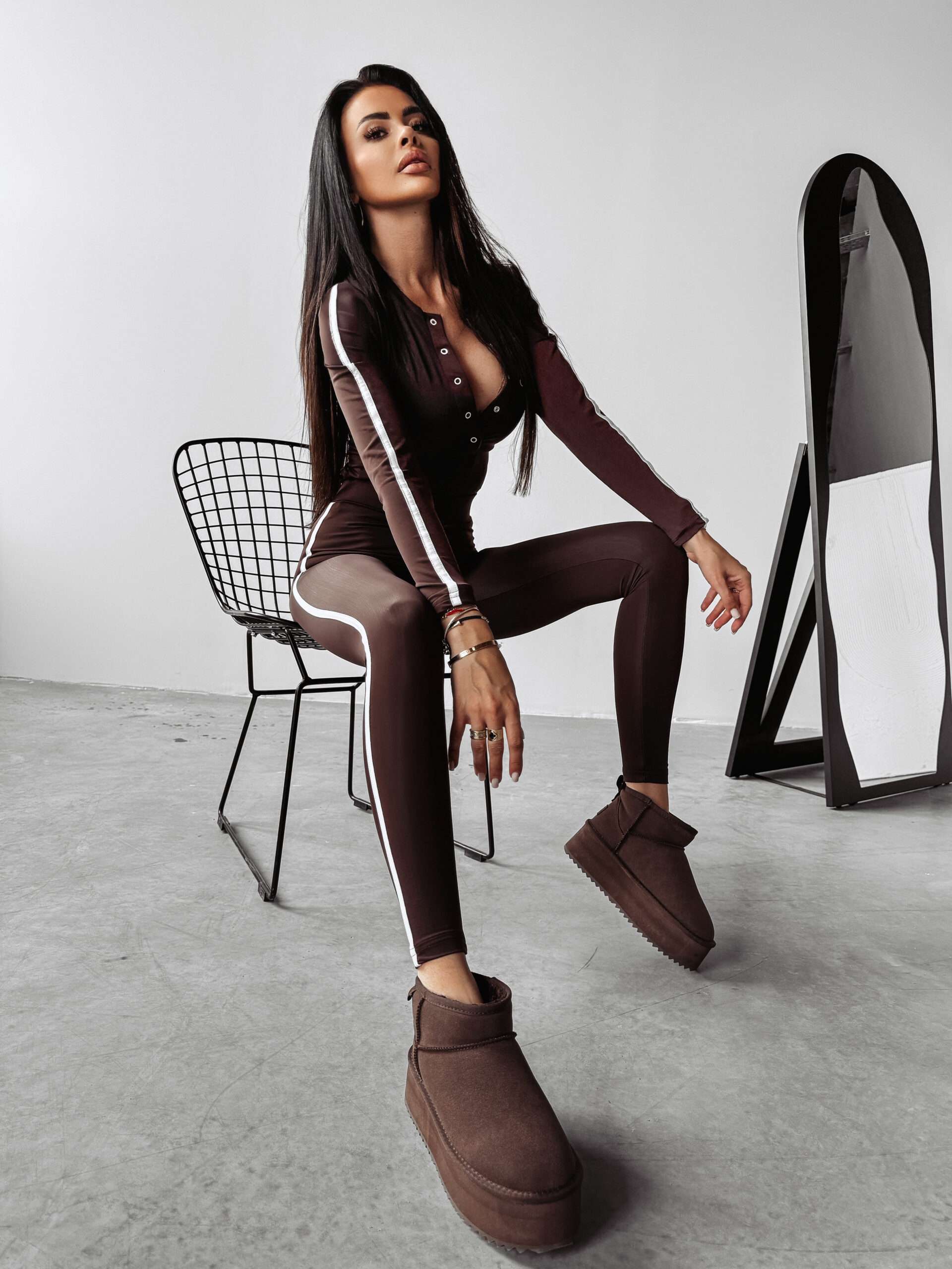 Przylegająca bluzka z długim rękawem, o prostym kroju. Wykonana z wysokiej jakości elastycznego materiału. Na ramionach poduszki dodające klasy. Po bokach lampasy. Na przodzie guziki, dzięki którymmożna regulować dekolt. Produkt posiada haft z logo marki OLAVOGA.
