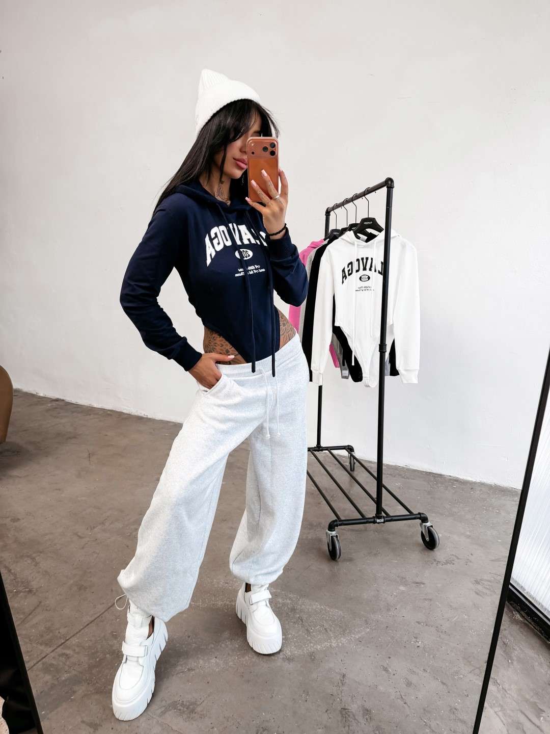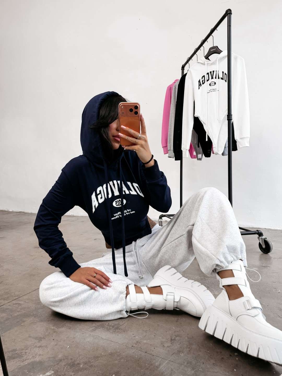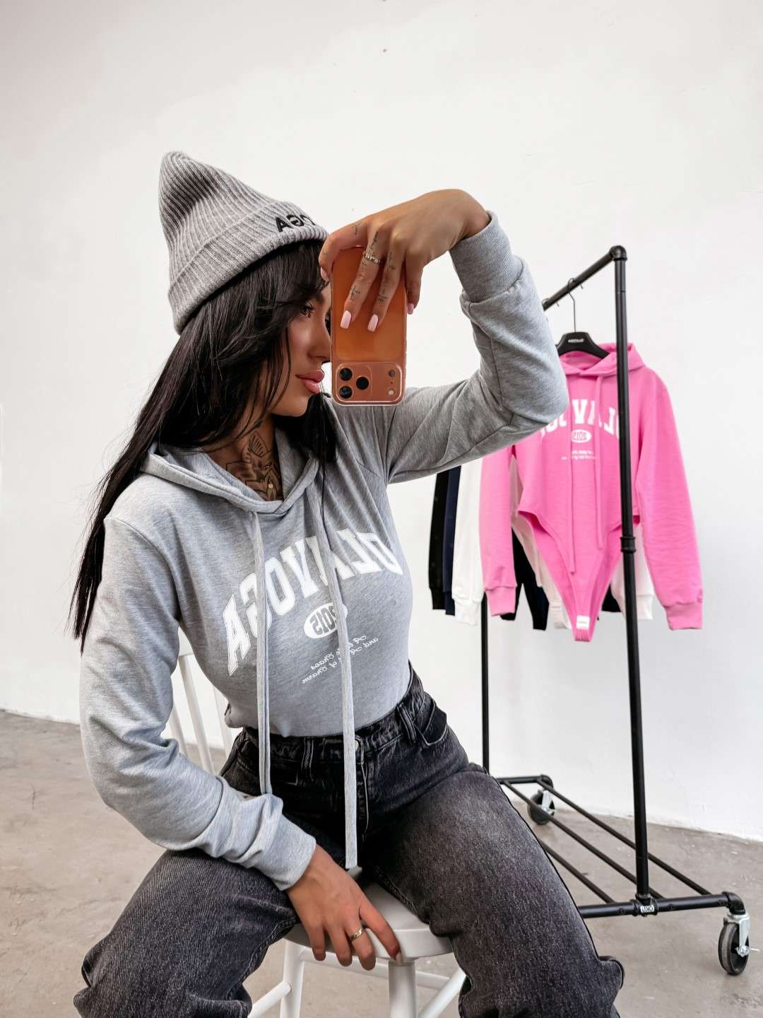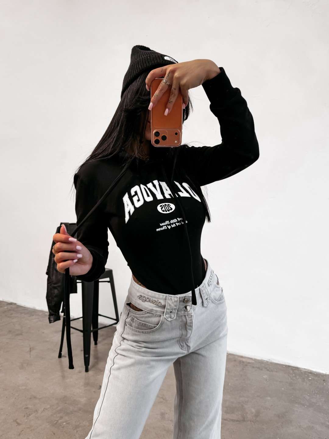 Casualowe body z długim rękawem i kapturem. Wykonane z wysokiej jakości elastycznego materiału. Prążkowane ściągacze. Przód zdobi obszerne logo marki OLAVOGA uzupełnione minimalistycznymi napisami, które przyciągają uwagę i nadają stylizacji wyrazistości.