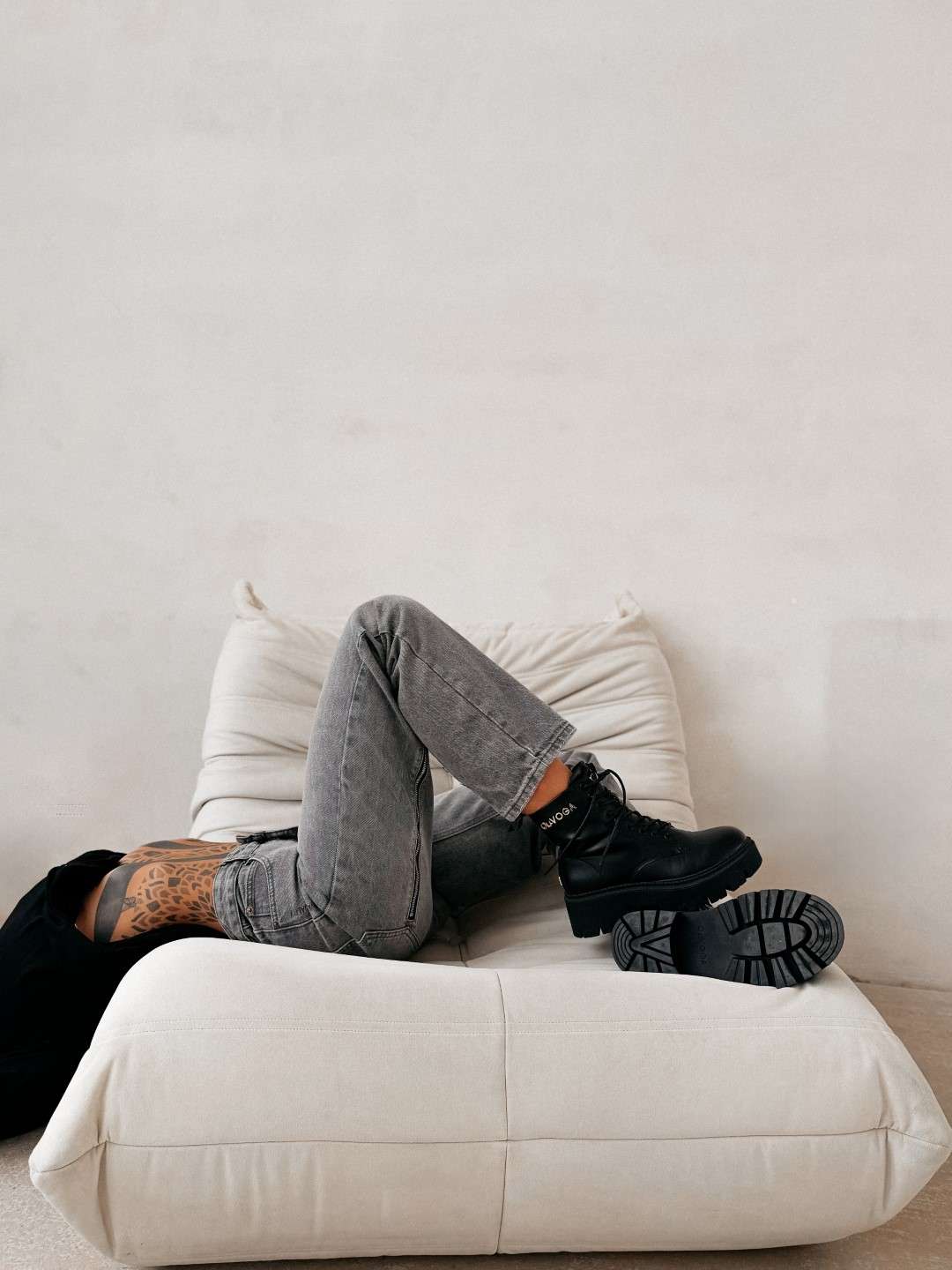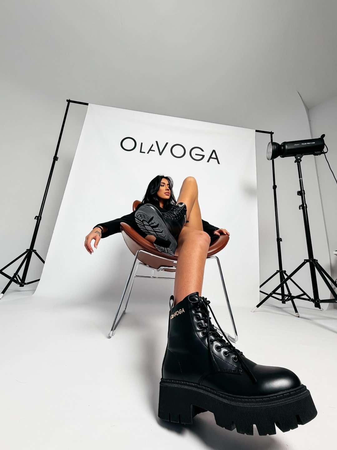 Masywne workery o wyrazistym, nowoczesnym designie. Wykonane z wysokiej jakości, gładkiego materiału o matowym wykończeniu. Model osadzony na masywnej, grubej podeszwie z głębokim bieżnikiem. Podeszwa została ozdobiona subtelnym tłoczeniem z logo marki OLAVOGA. Buty zapinane z boku na praktyczny zamek. Z tyłu znajduje się wygodna pętelka ułatwiająca zakładanie. Całość dopełniają metaliczne detale w złotym odcieniu oraz logo brandu umieszczone z boku i na pięcie.