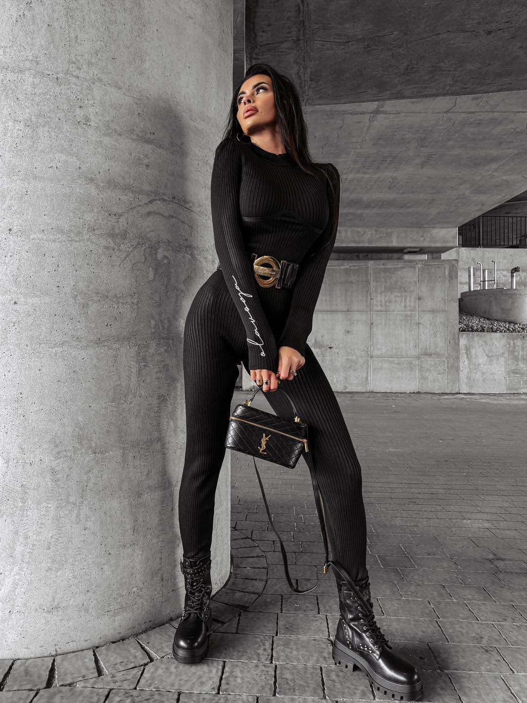 Idealnie dopasowany kombinezon z długim rękawem. Wykonany z wysokiej jakości prążkowanego materiału.