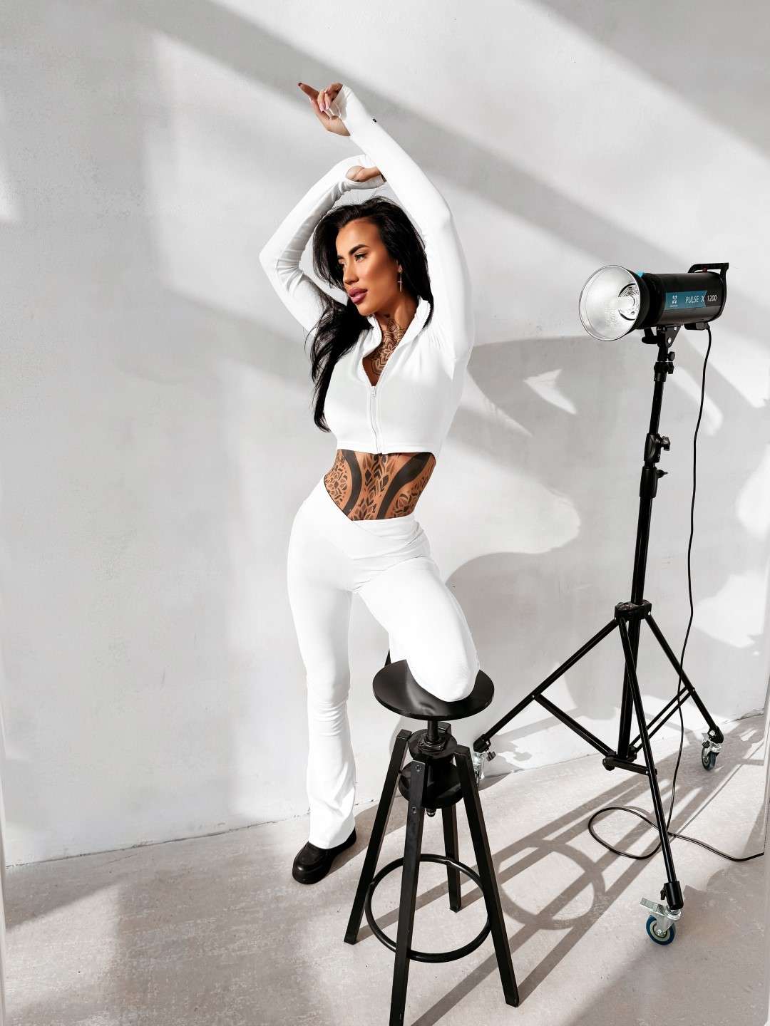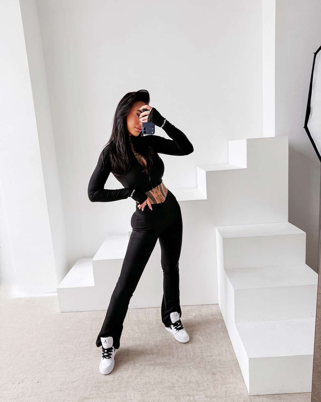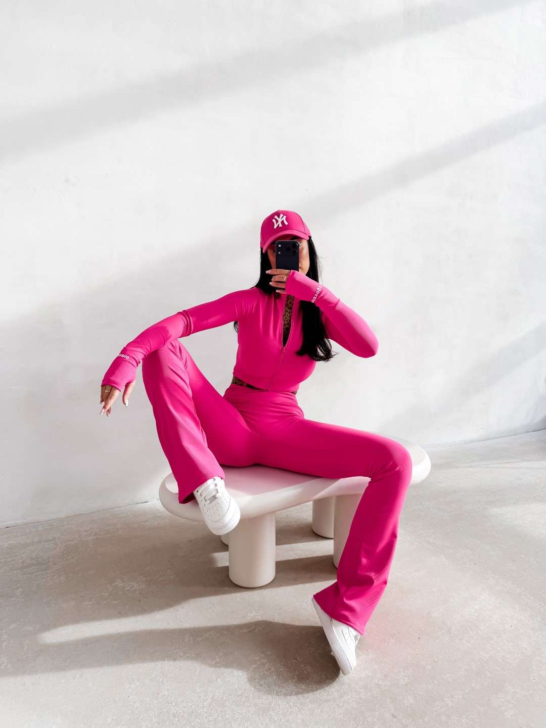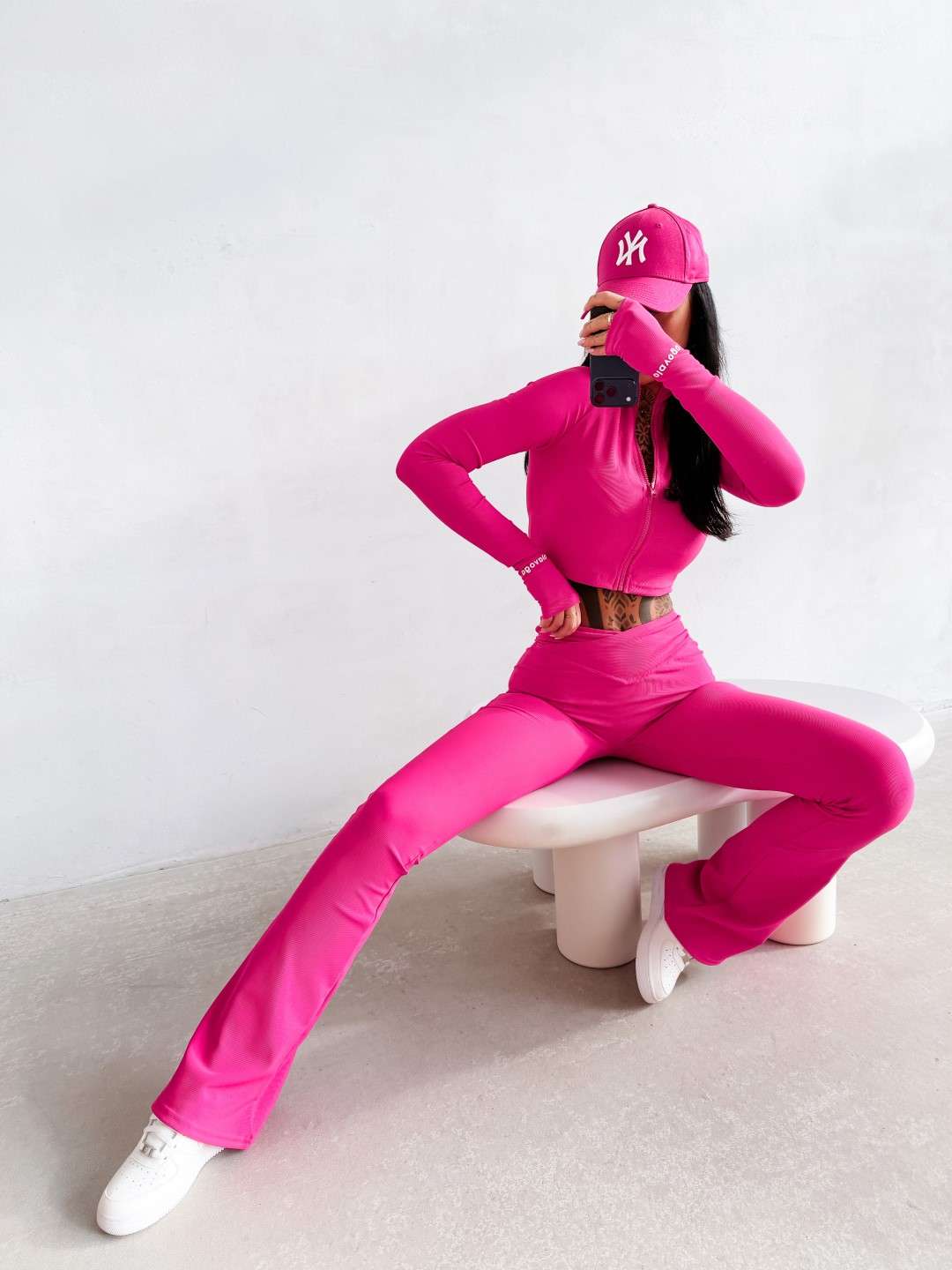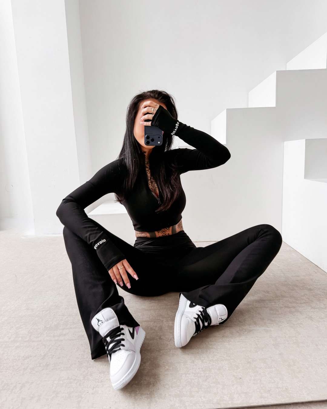 Komplet dopasowany wykonany z elastycznej, miękkiej tkaniny. Legginsy z modelującym pasem podkreślającym sylwetkę oraz subtelnym logo OLAVOGA. Krótka bluza zapinana na suwak. Legginsy z wysokim stanem. Ważne aspekty: dopasowany, modelujący krój, elastyczna komfortowa tkanina, legginsy z wysokim, modelującym pasem, subtelne logo OLAVOGA, krótka bluza zapinana na suwak.