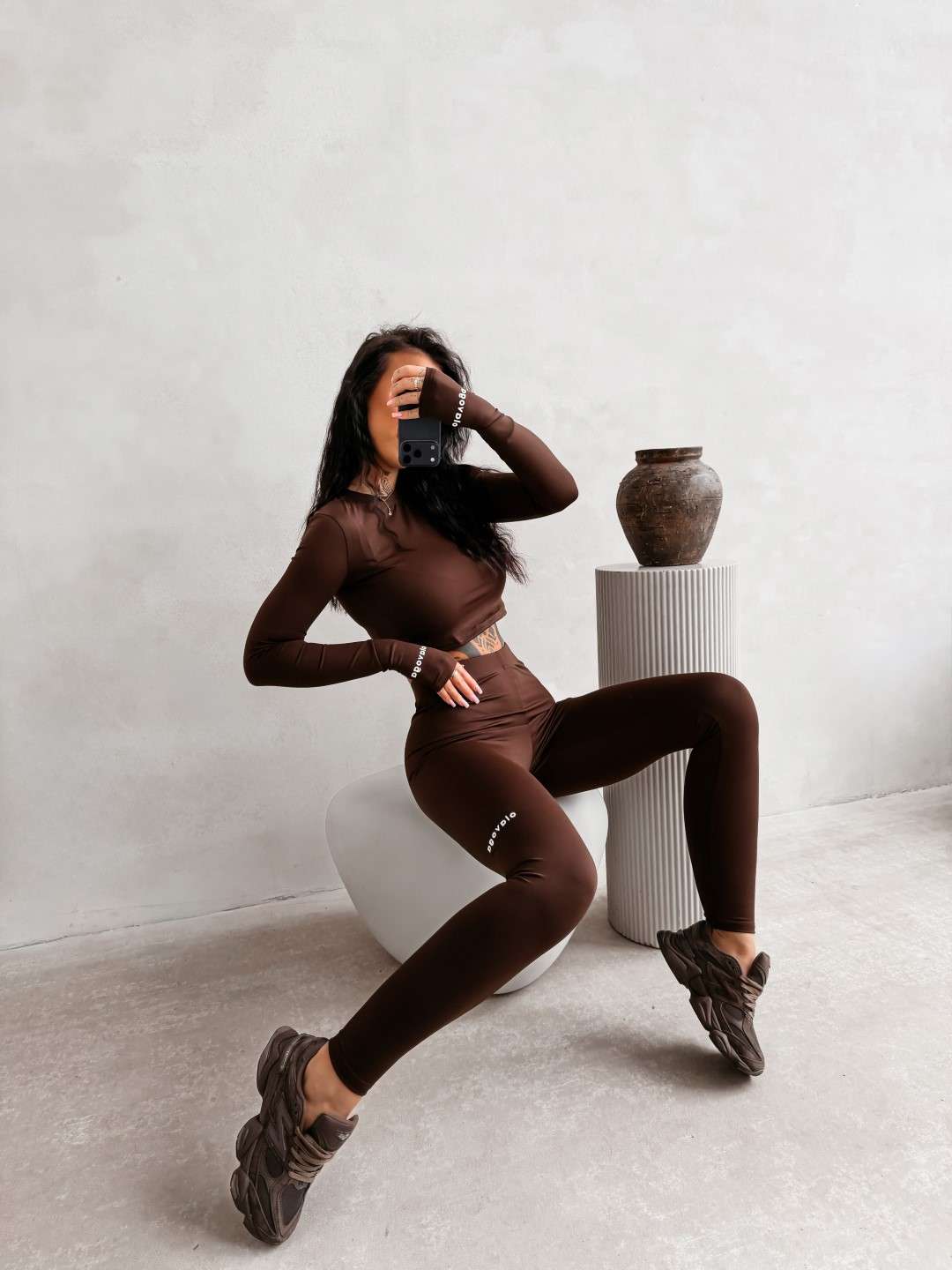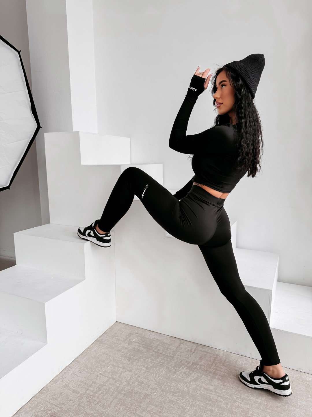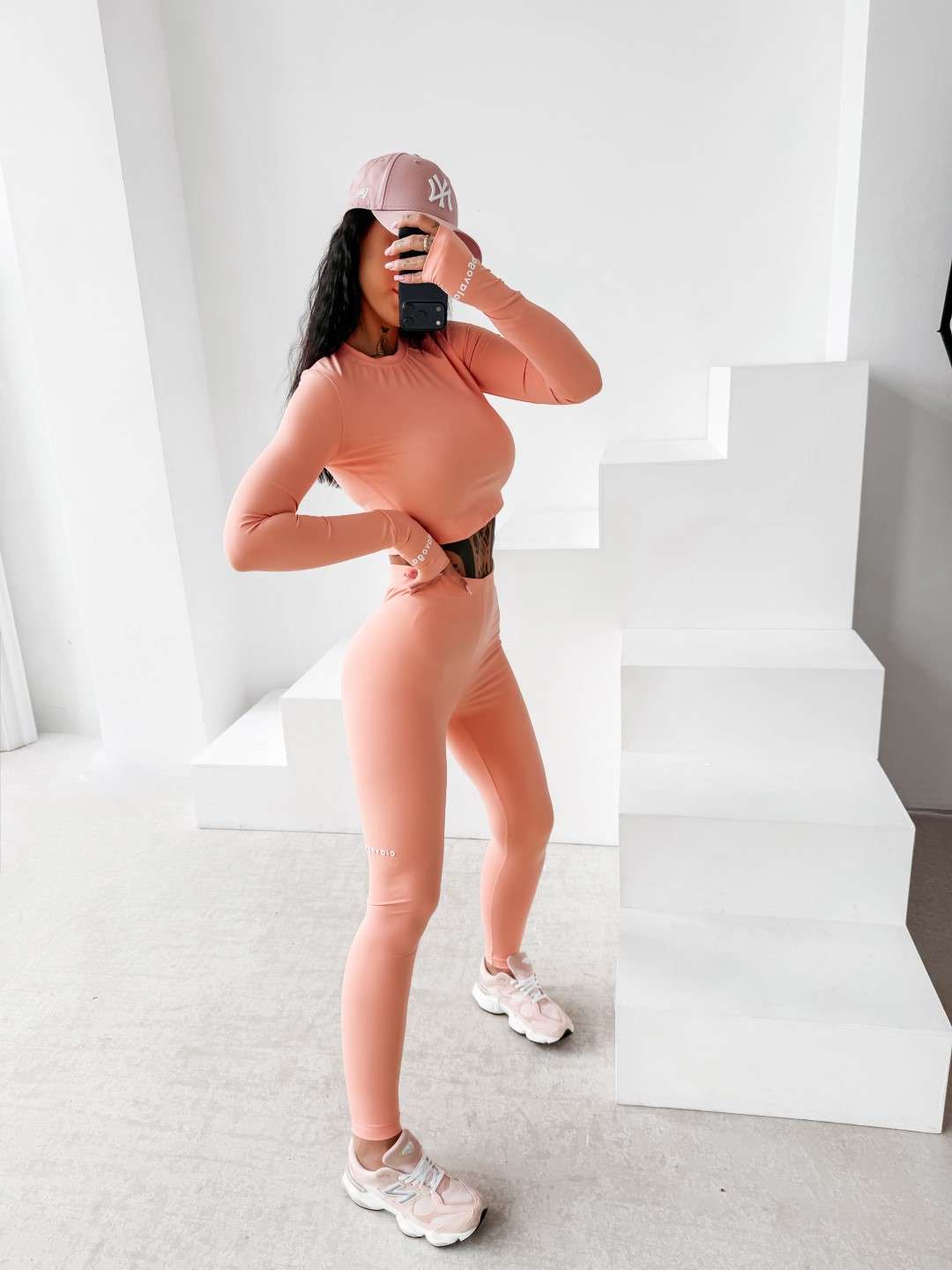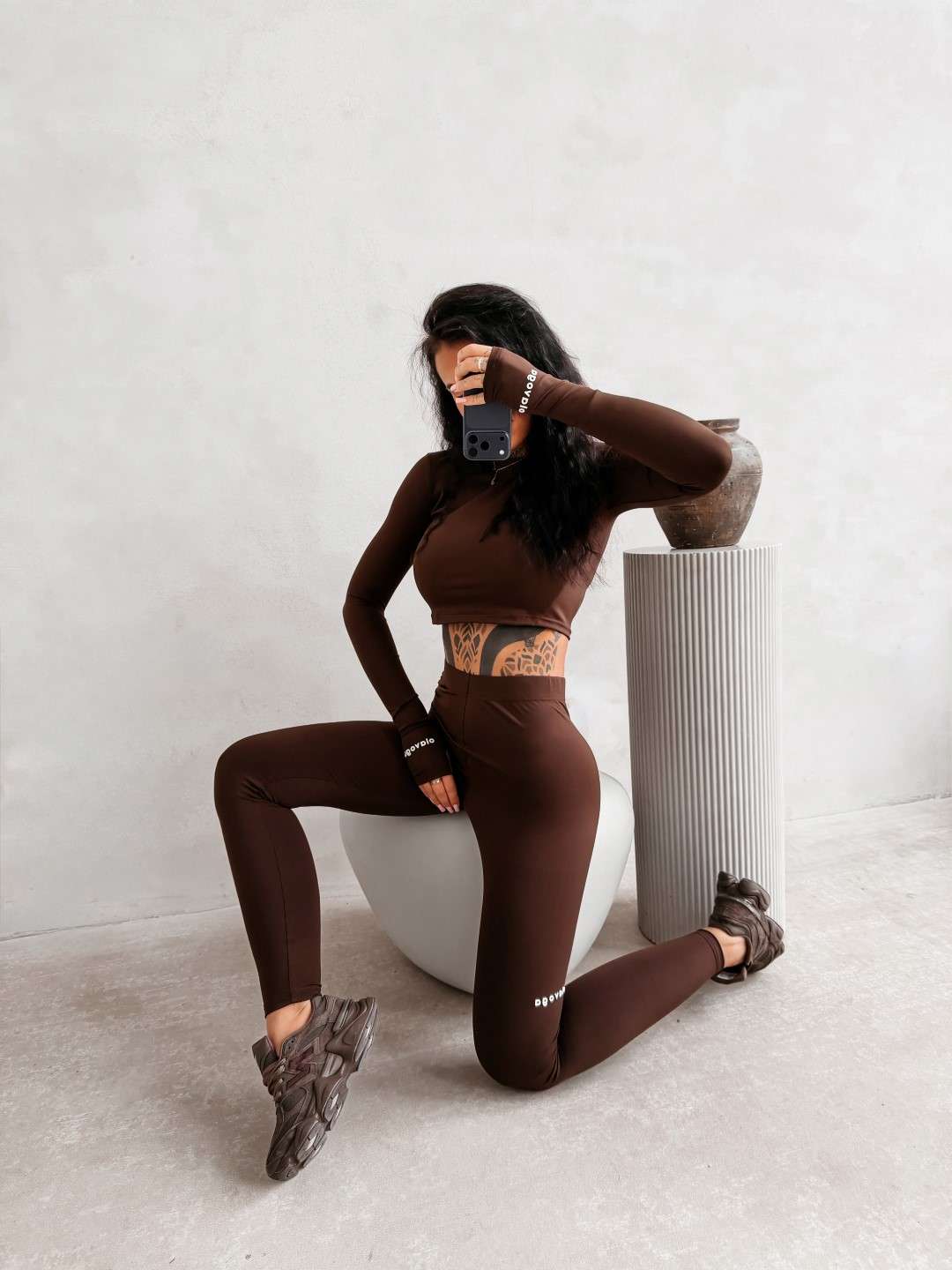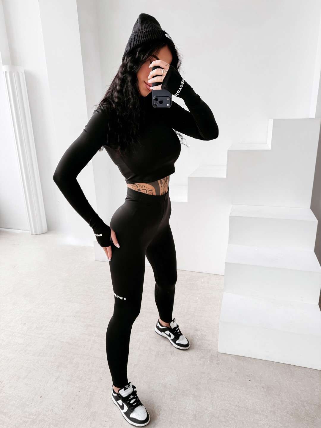 Komplet dopasowany wykonany z elastycznego, miękkiego materiału zapewniającej maksymalny komfort i swobodę ruchów. Minimalistyczna forma z subtelnym brandingiem OLAVOGA podkreśla nowoczesny, sportowo-kobiece charakter, a krótki top i legginsy tworzą spójną, sylwetkową całość. Ważne aspekty: dopasowany, podkreślający sylwetkę krój, elastyczna, miękka i komfortowa tkanina, krótki top z długim rękawem, legginsy z wysokim stanem, subtelne logo OLAVOGA.