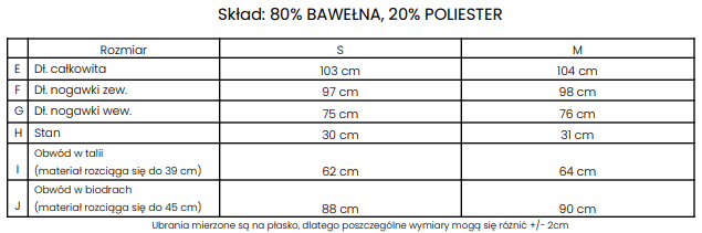 spodnie z elastycznym pasem, praktyczne kieszenie po bokach, nogawki zakończone ściągaczami.