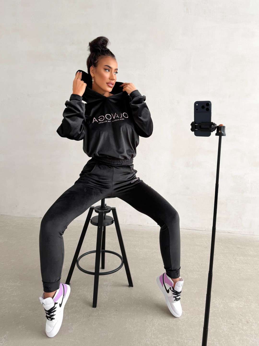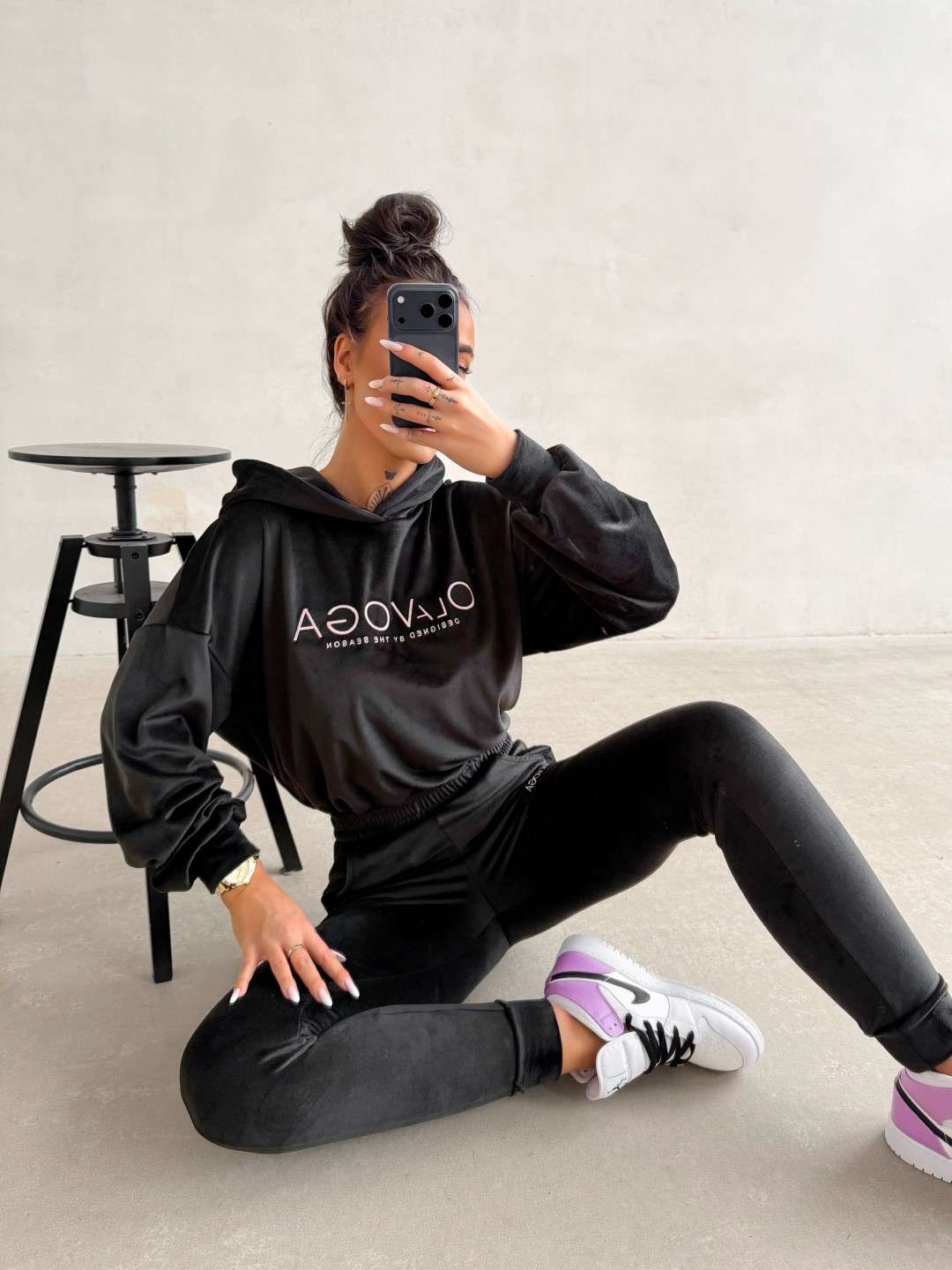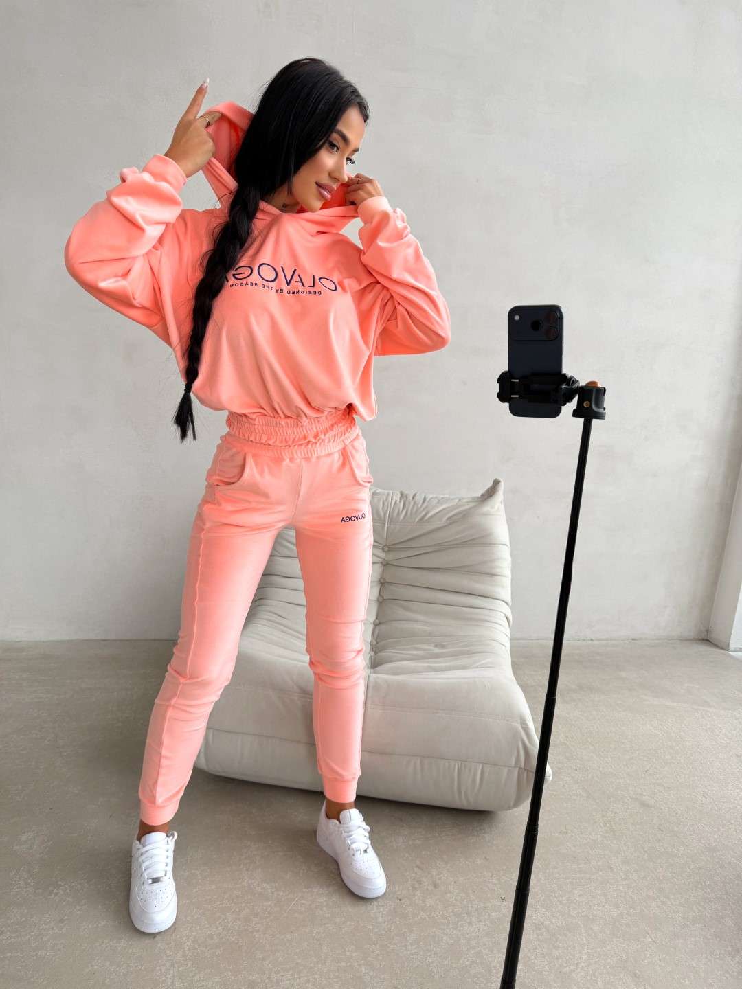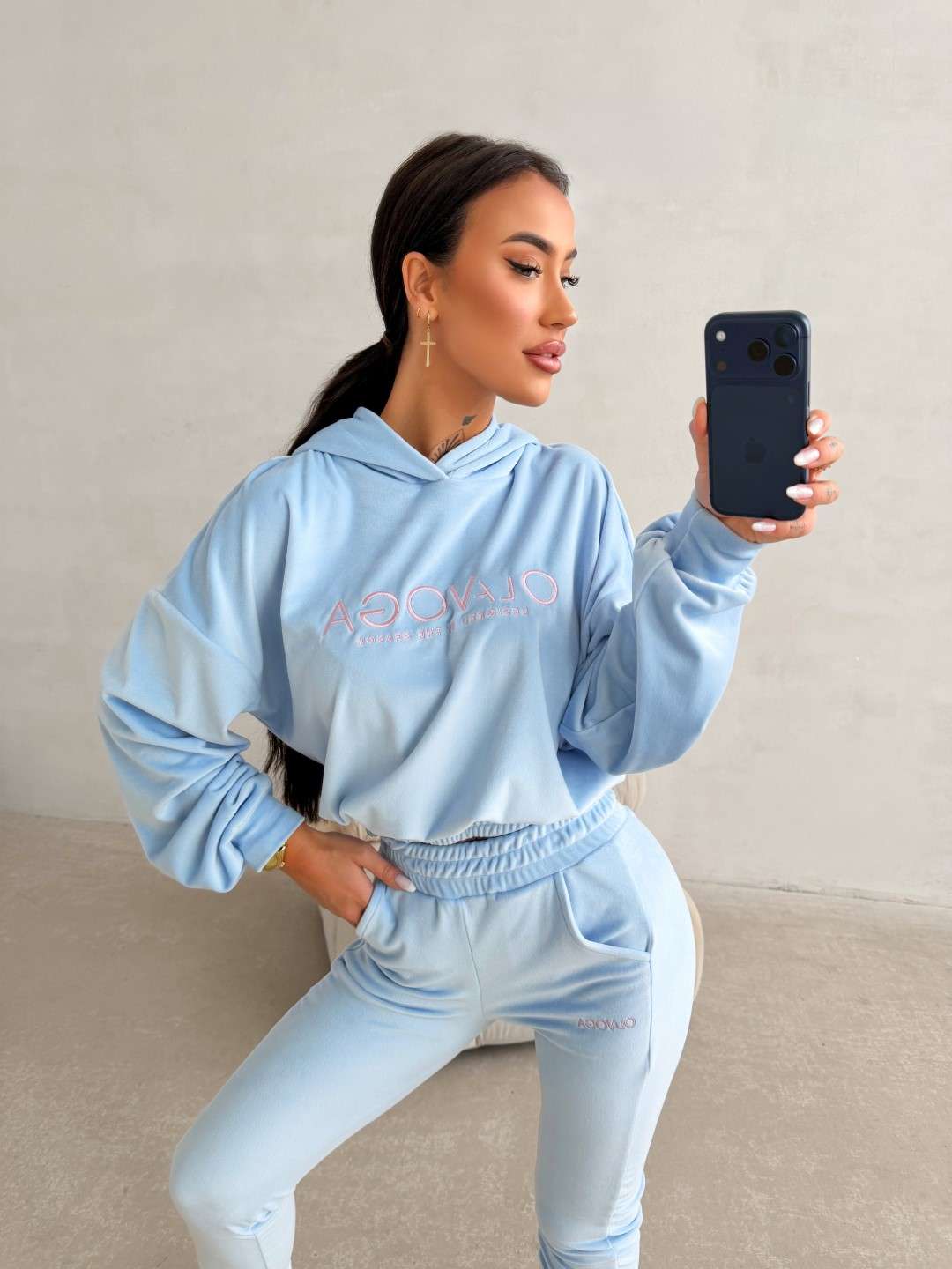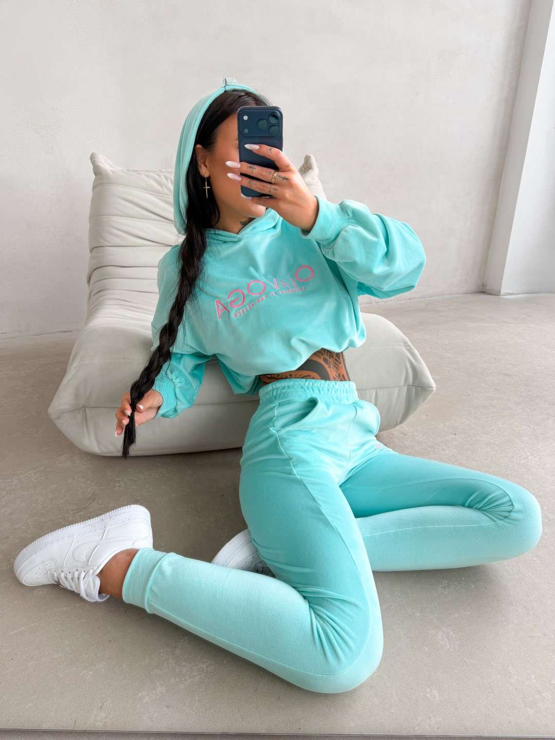 Komplet dresowy o wygodnym, casualowym charakterze wykonany z miękkiej, przyjemnej w dotyku tkaniny. Bluza z kapturem ozdobiona kontrastowym logo marki OLAVOGA oraz spodnie z elastycznym pasem tworzą spójną, komfortową całość na co dzień. Ważne aspekty: wygodny, swobodny krój, miękka, przyjemna w dotyku tkanina, bluza z kapturem i ściągaczem u dołu,