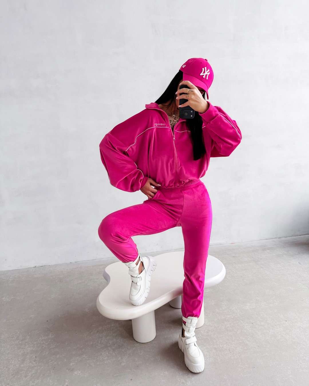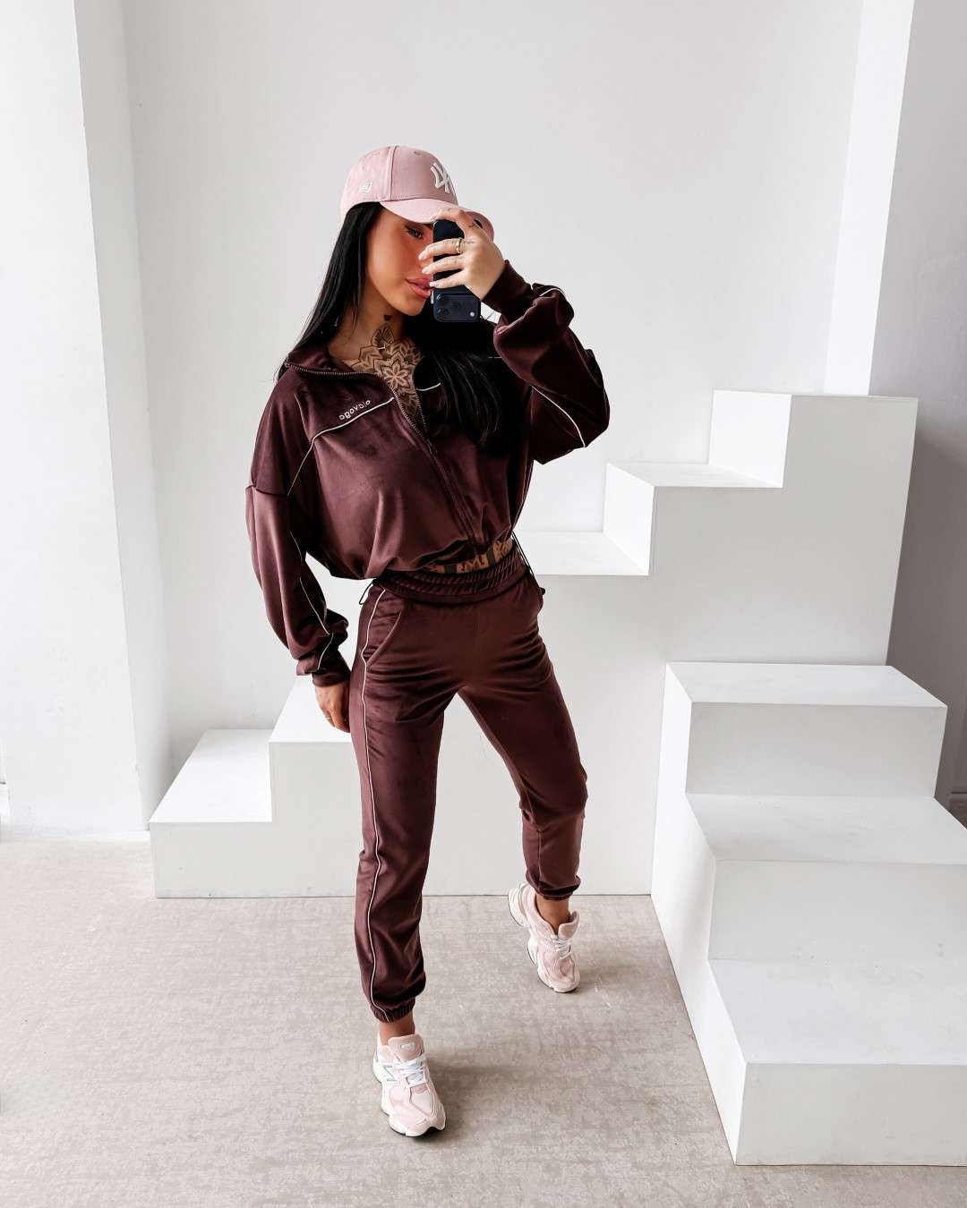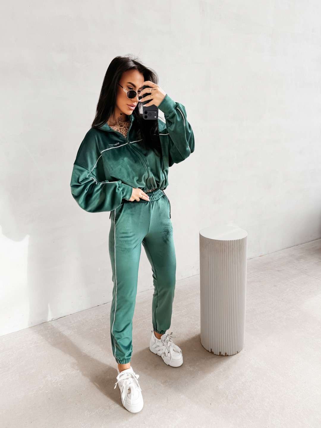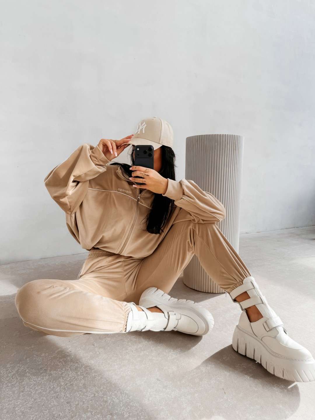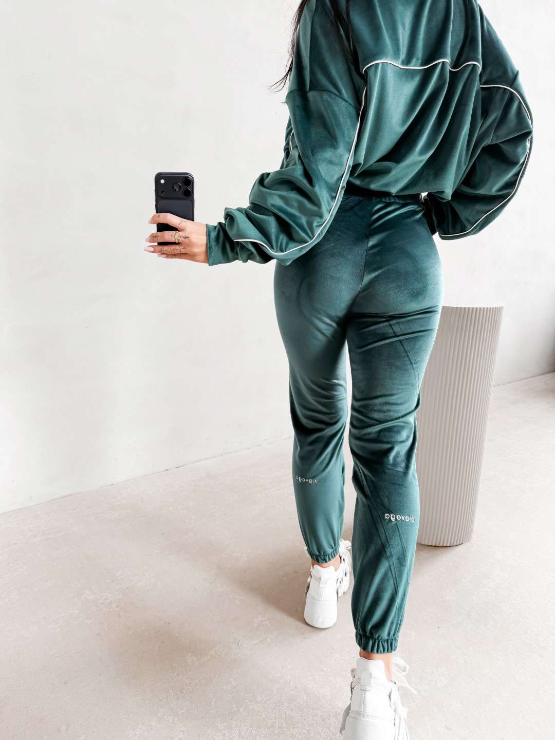 Komplet dresowy wykonany z miękkiej, przyjemnej w dotyku tkaniny. Bluza zapinana na suwak z delikatnymi kontrastowymi przeszyciami i minimalistycznym logo marki OLAVOGA tworzy spójną całość ze spodniami o wygodnym kroju. Ważne aspekty: bluza zapinana na suwak, subtelne kontrastowe lamówki podkreślające linię sylwetki, minimalistyczne logo OLAVOGA na bluzie,