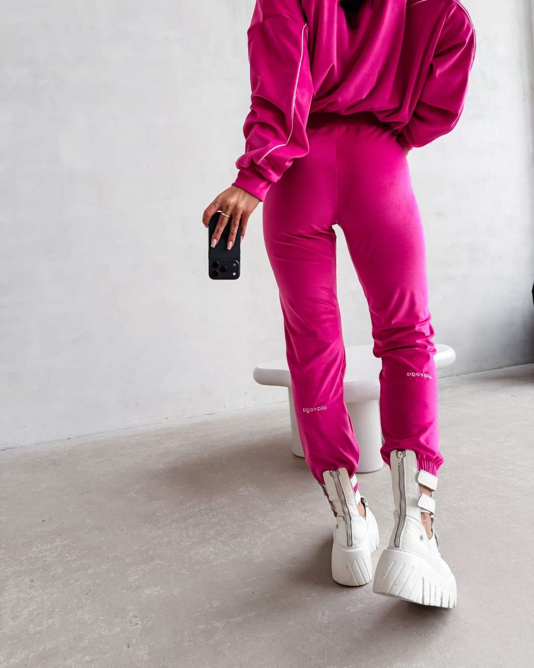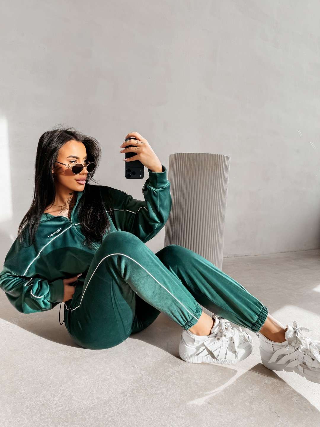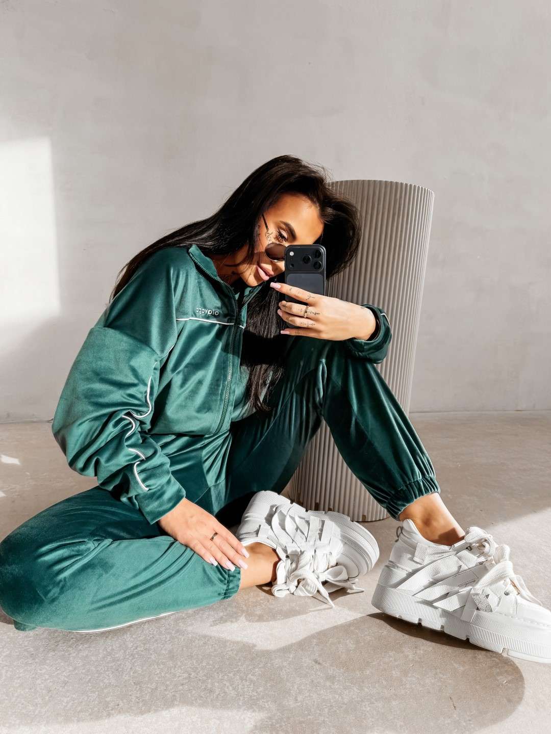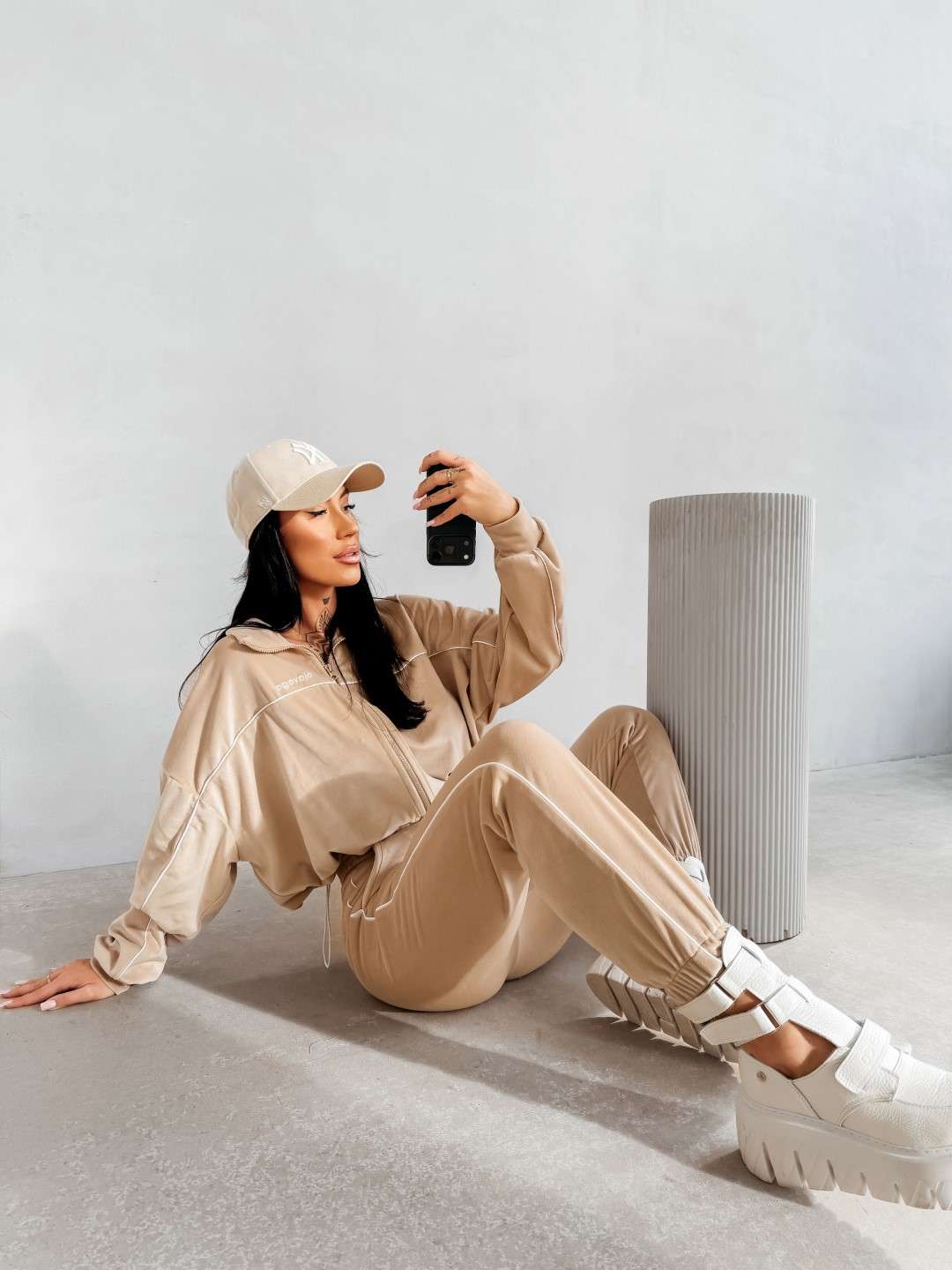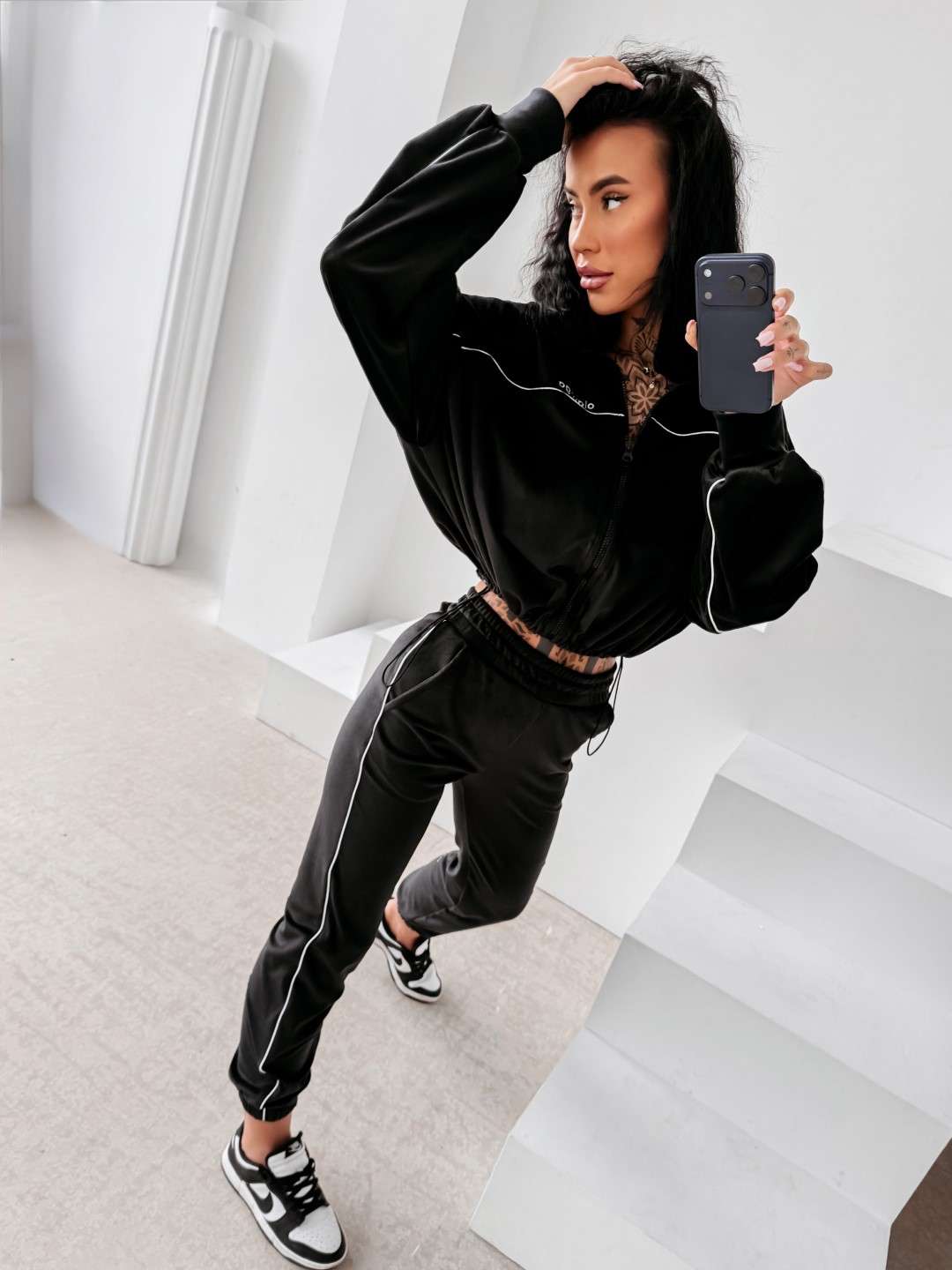 Komplet dresowy wykonany z miękkiej, przyjemnej w dotyku tkaniny. Bluza zapinana na suwak z delikatnymi kontrastowymi przeszyciami i minimalistycznym logo marki OLAVOGA tworzy spójną całość ze spodniami o wygodnym kroju. Ważne aspekty: bluza zapinana na suwak, subtelne kontrastowe lamówki podkreślające linię sylwetki, minimalistyczne logo OLAVOGA na bluzie,