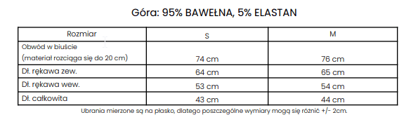 Idealnie przylegający komplet, wykonany z wysokiej jakości elastycznej bawełny. Góra -bluzka o krótszym kroju z długim rękawem. Posiada suwak, dzięki któremu można regulowaćdekolt. Na przodzie logo marki OLAVOGA. Tył posiada logo brandu w ciekawym princie. Dół – legginsy z wysokim stanem. Logo marki OLAVOGA na tyle produktu.