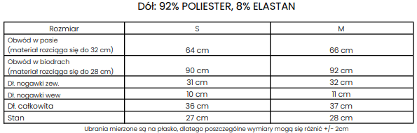 Sportowy komplet damski wykonany z miękkiego w dotyku weluru. Góra – bluza z kapturem z krótkim rękawem. Logowana guma w talii. Kaptur regulowany poprzez sznurek. Na przodzie haft OLV. Dół – szorty z logowana guma w talii. Po bokach kieszenie.