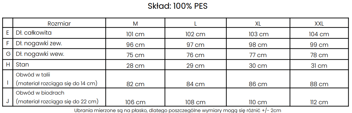 Spodnie z kieszeniami oraz ściągaczami przy nogawkach. Lampasy po bokach.