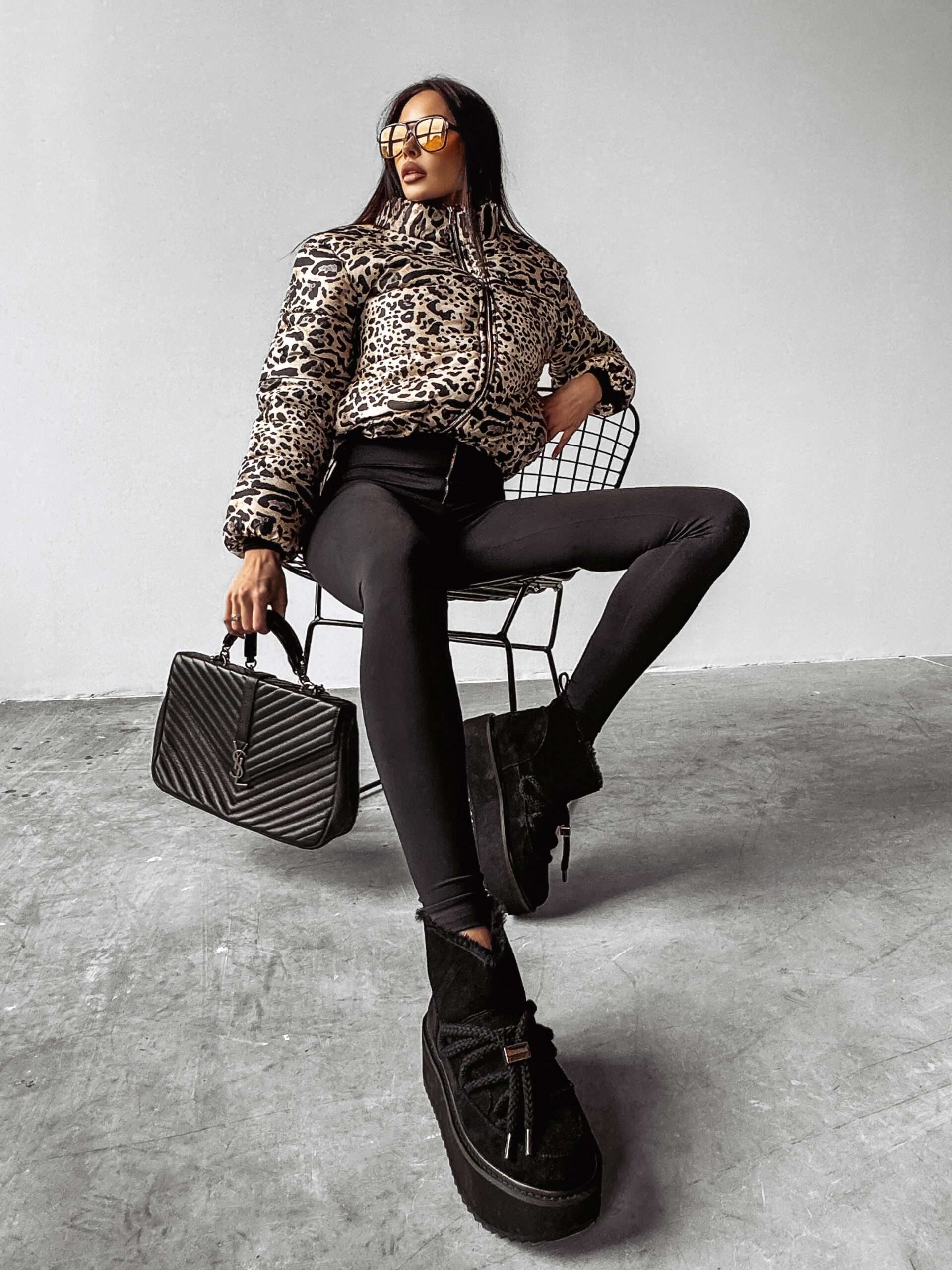 Pikowana kurtka w stylu bomber jacket. Długość sięgająca talii. Wysoki kołnierz. Na tyleobszerny haft z logo marki OLAVOGA z minimalistycznym napisem THE ROYAL QUALITY. Z przodu kieszenie. Na brzegach ściągacze.