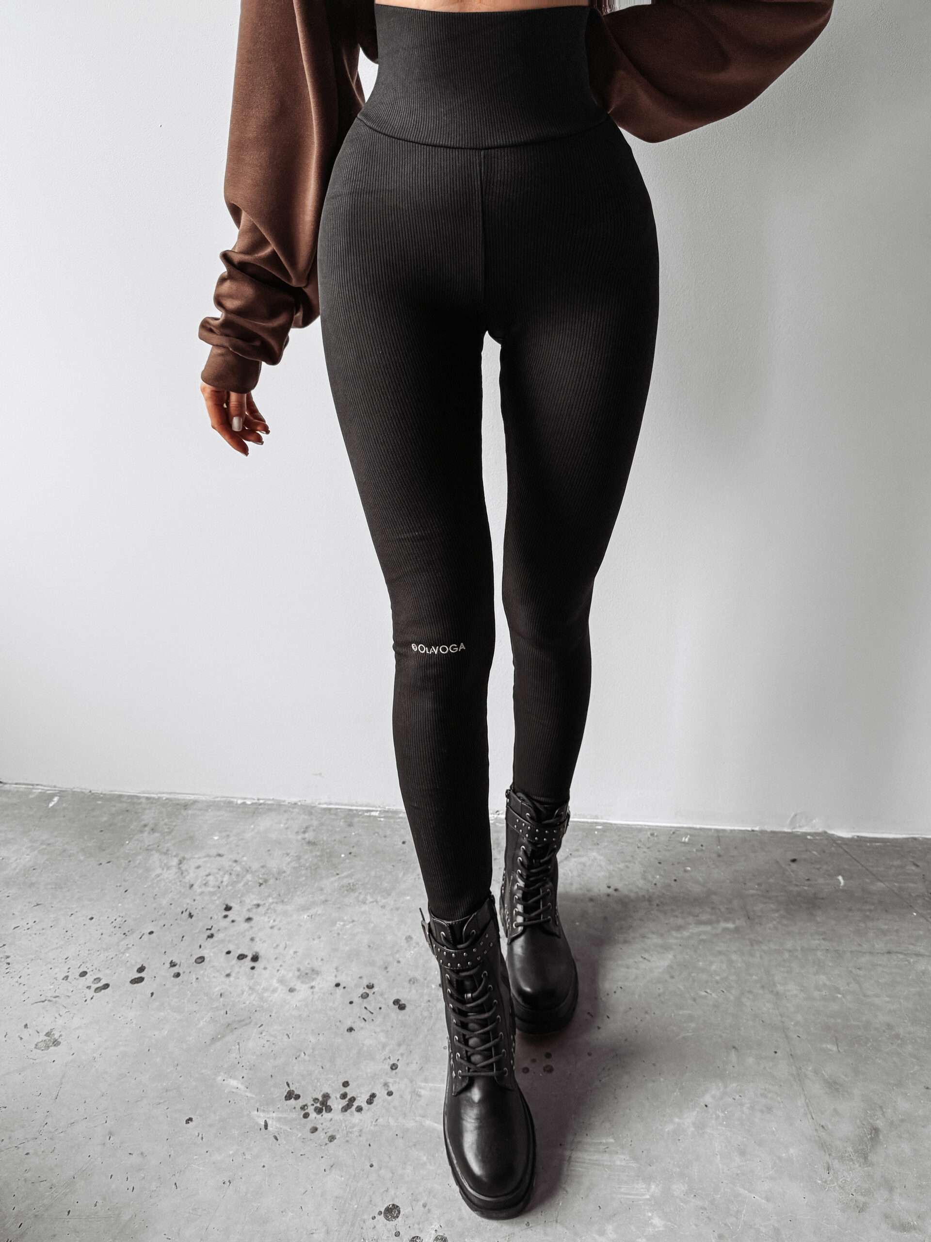 Ocieplane oraz idealnie przylegające legginsy wykonane z wysokiej jakości materiału. Posiadają wysoki stan. Na jednej z nogawek haft z logo marki OLAVOGA.