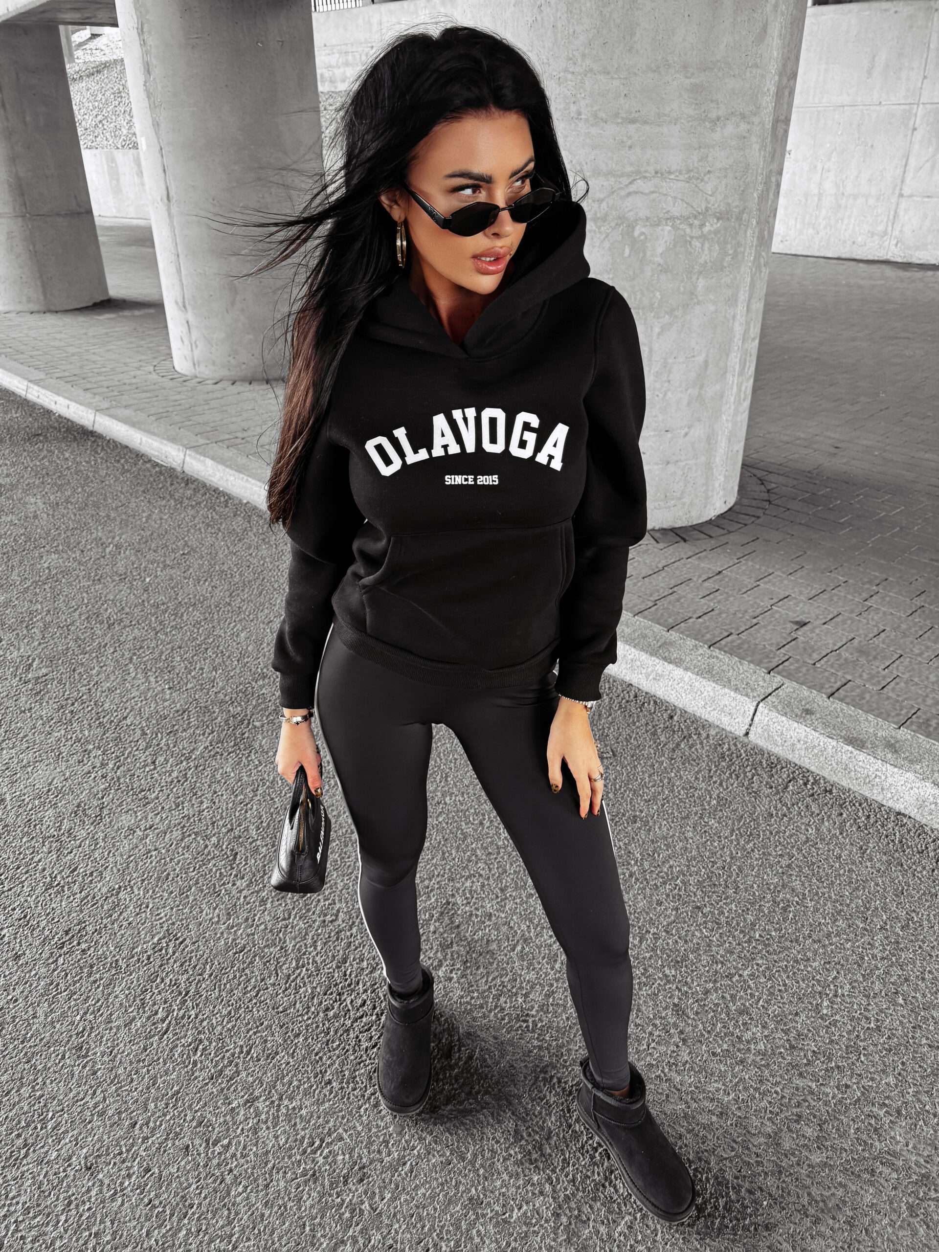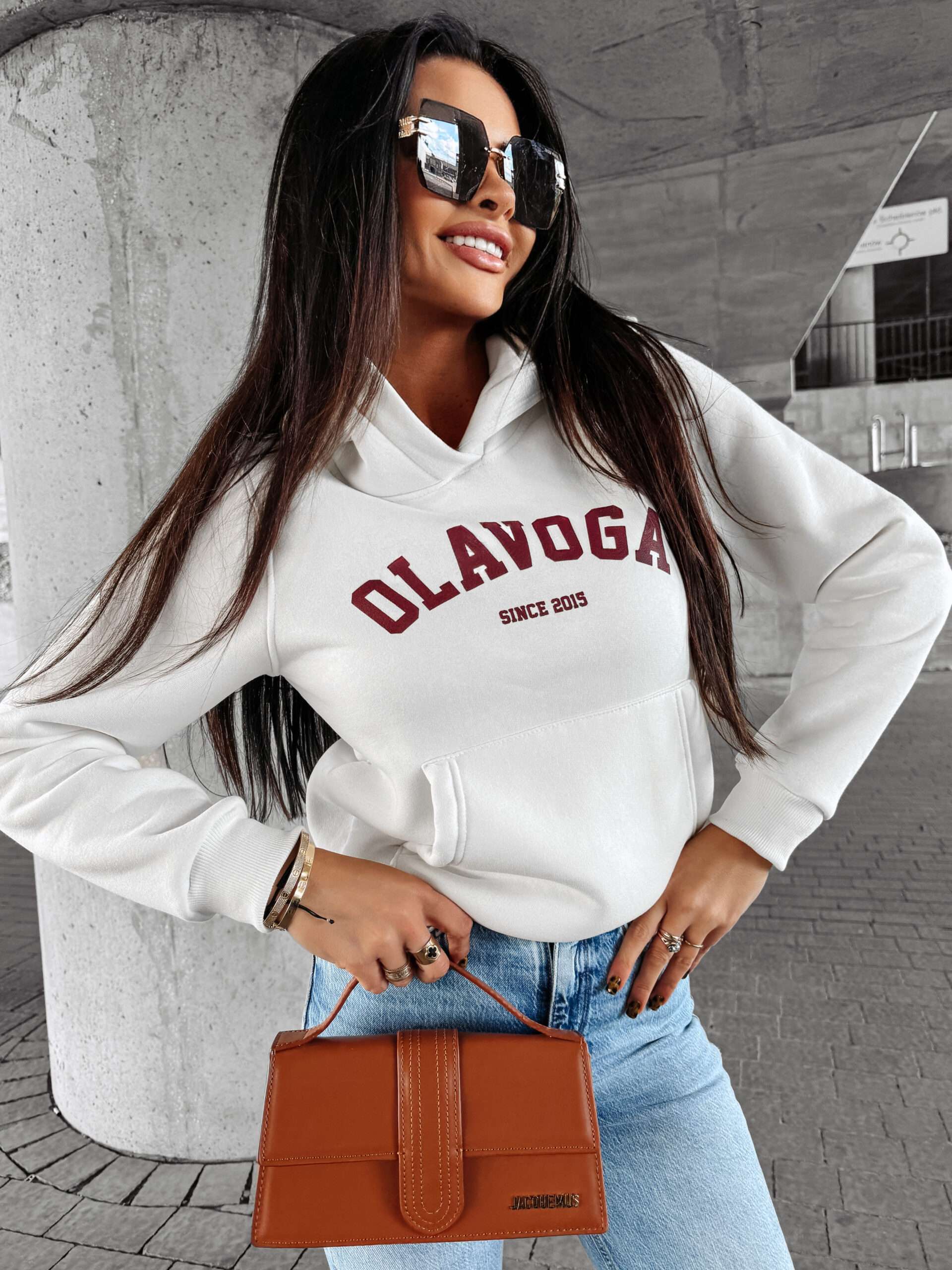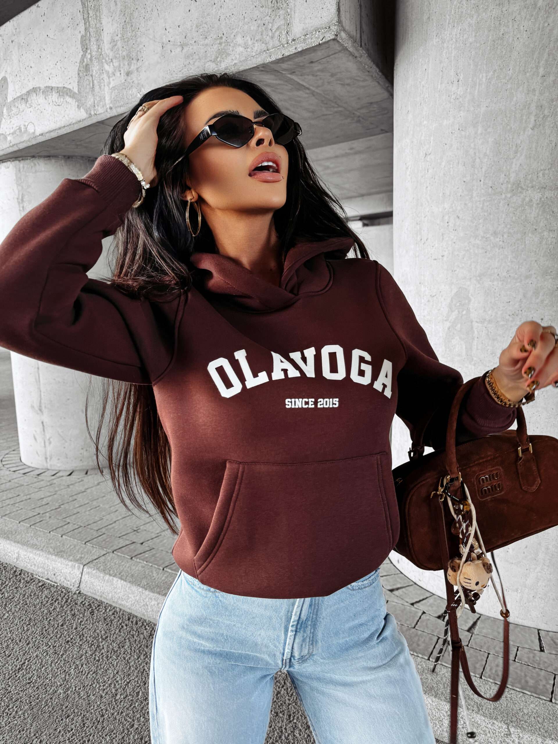 Bluza z kapturem, typu hoodie. Na przodzie kieszeń oraz obszerne logo marki OLAVOGA z