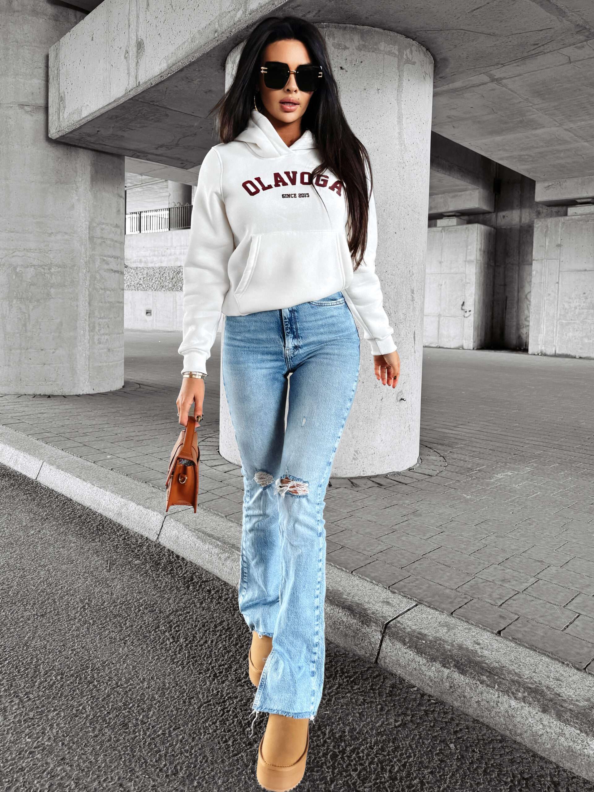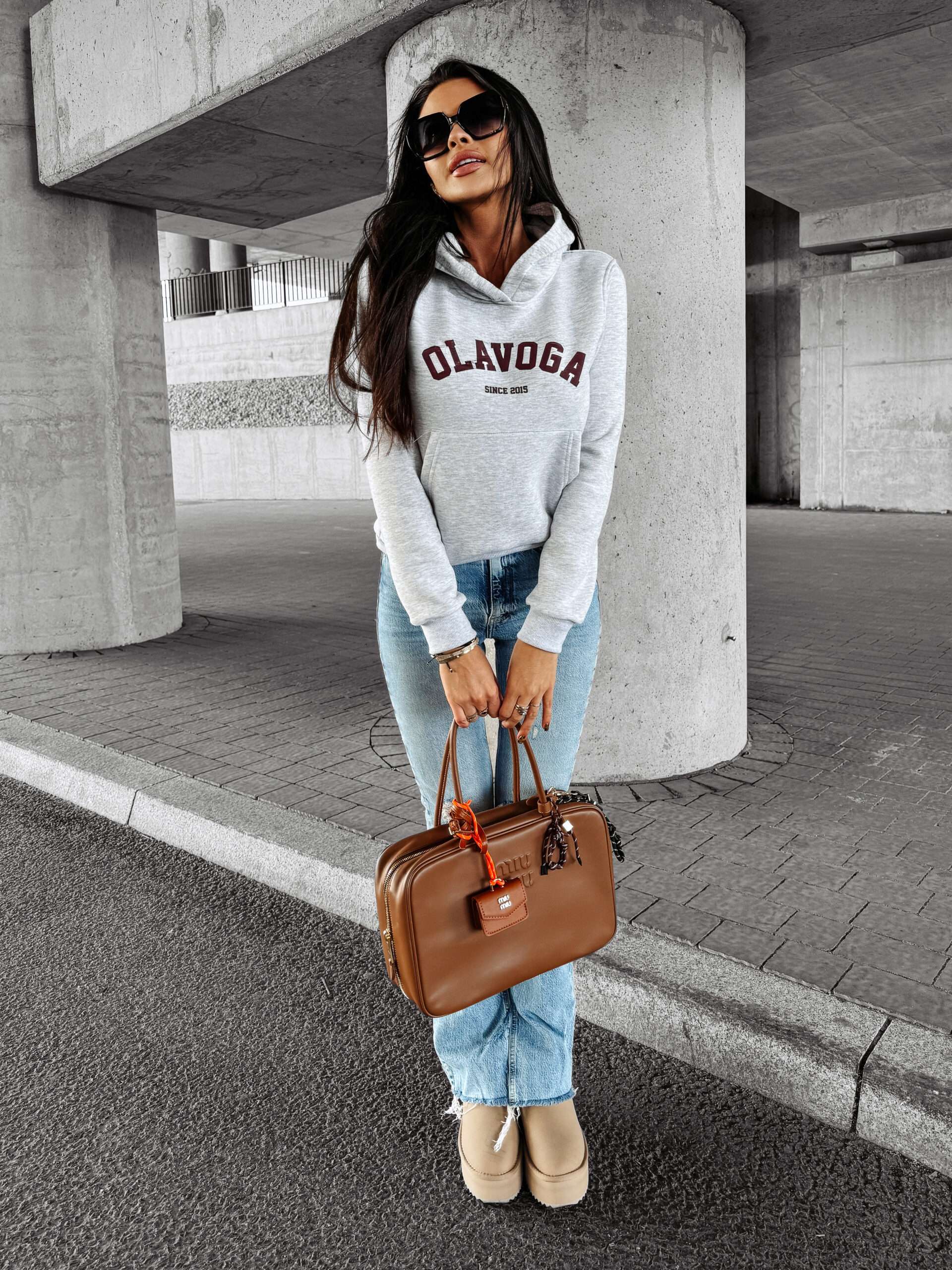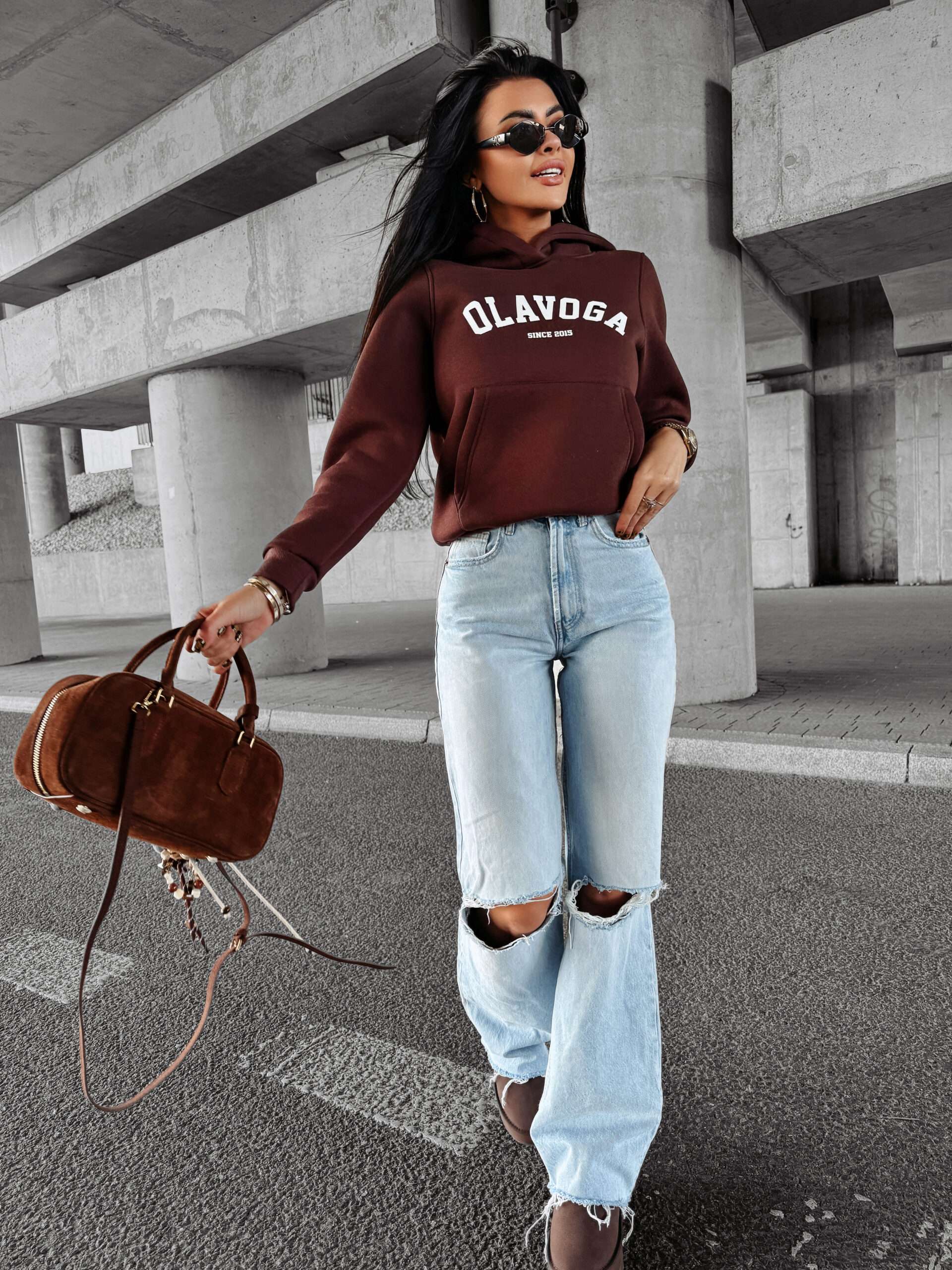 Bluza z kapturem, typu hoodie. Na przodzie kieszeń oraz obszerne logo marki OLAVOGA z