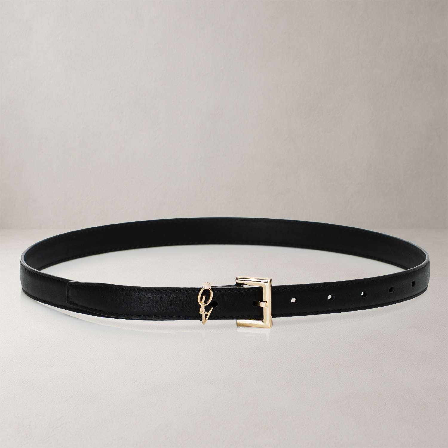 Cienki pasek wykonany z wysokiej jakości skóry naturalnej o gładkim wykończeniu. Model o subtelnej szerokości. Klasyczna metalowa klamra oraz delikatna zawieszka z logo. Regulowane zapięcie.