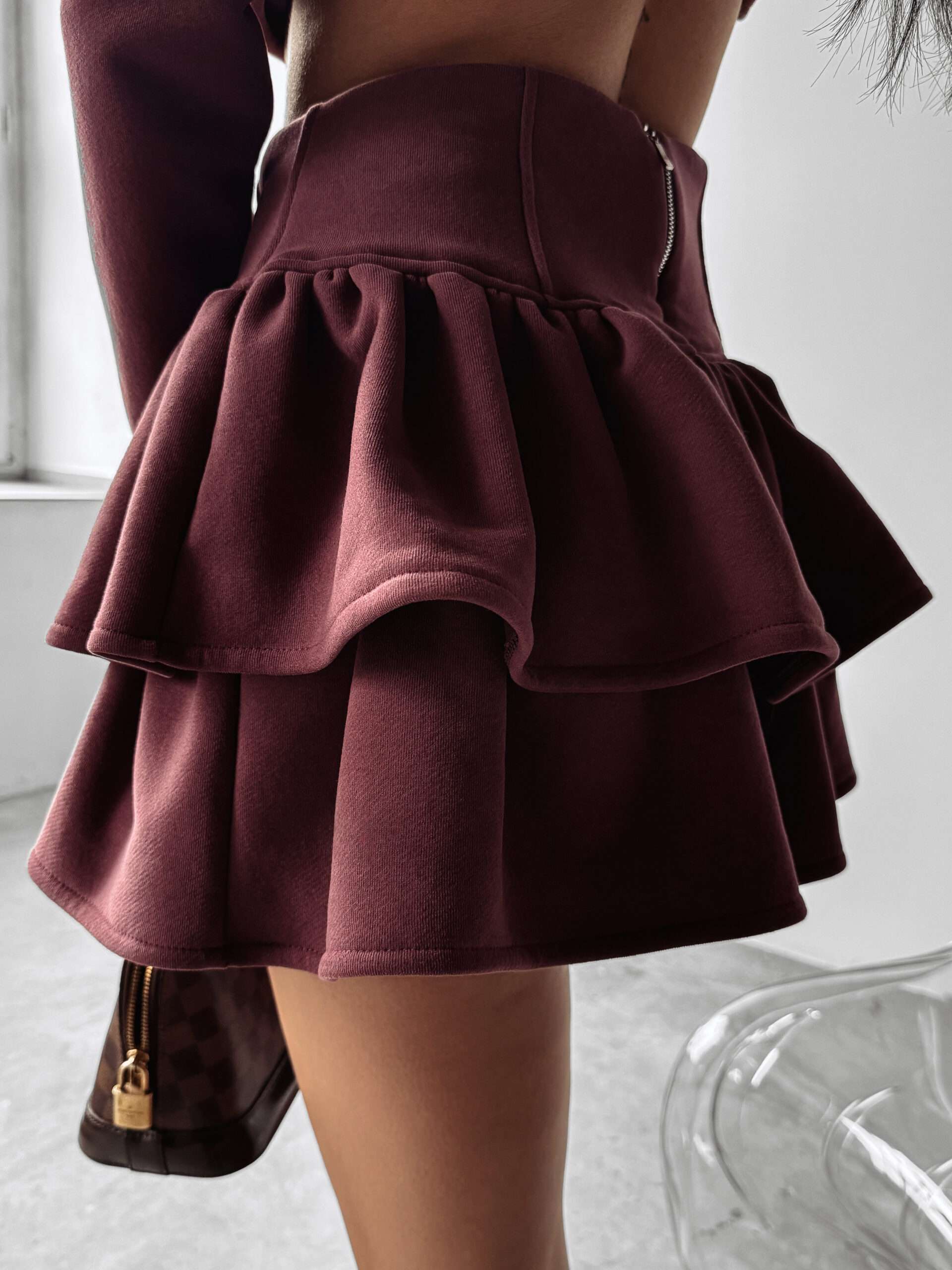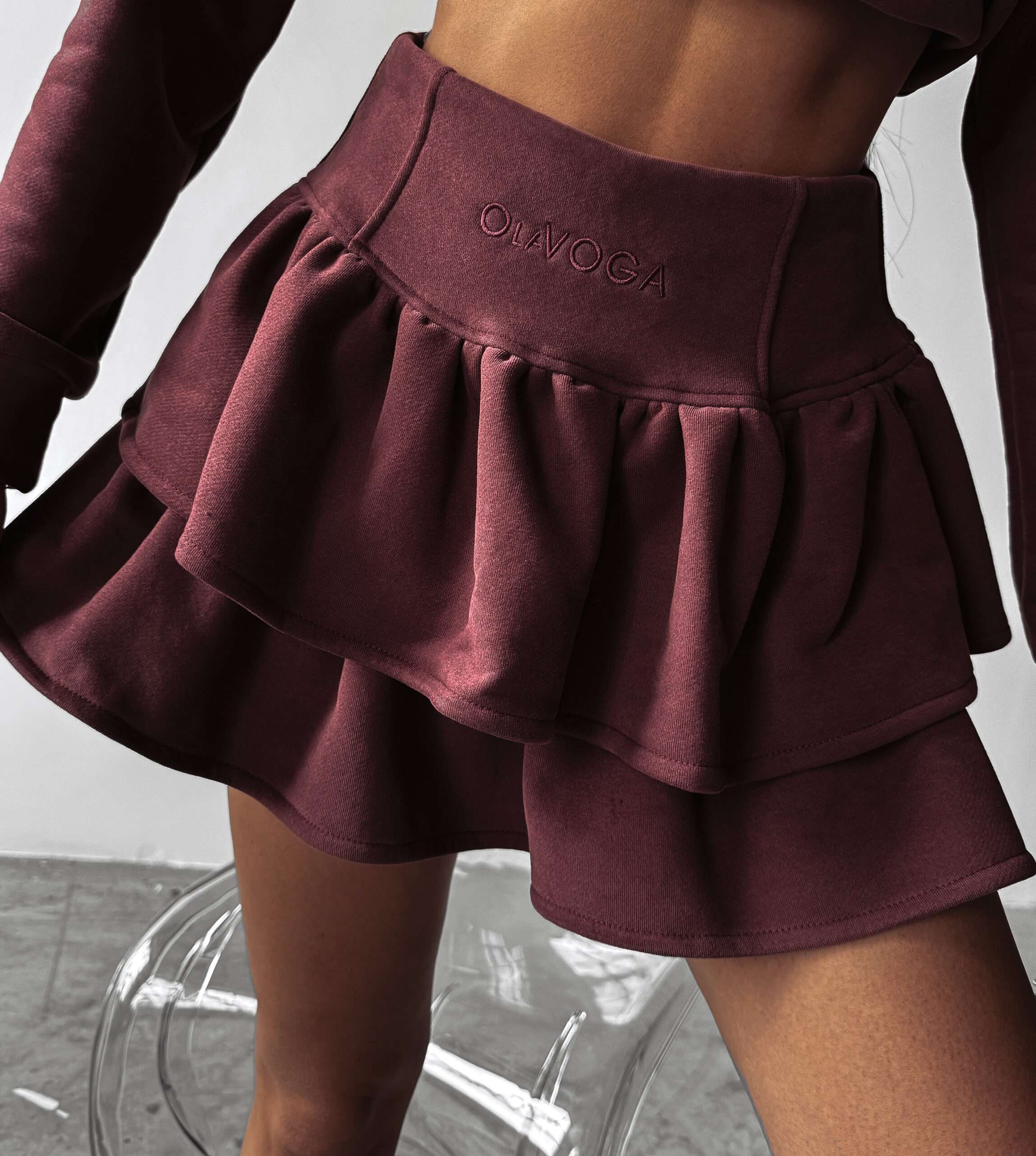 Spódnico-spodenki z falbankami. W talii wysoka pas wysmuklający sylwetkę. Na przodzie minimalistyczny haft z logo marki OLAVOGA. Wykonana z wysokiej jakości, ciepłego,bawełnianego materiału.