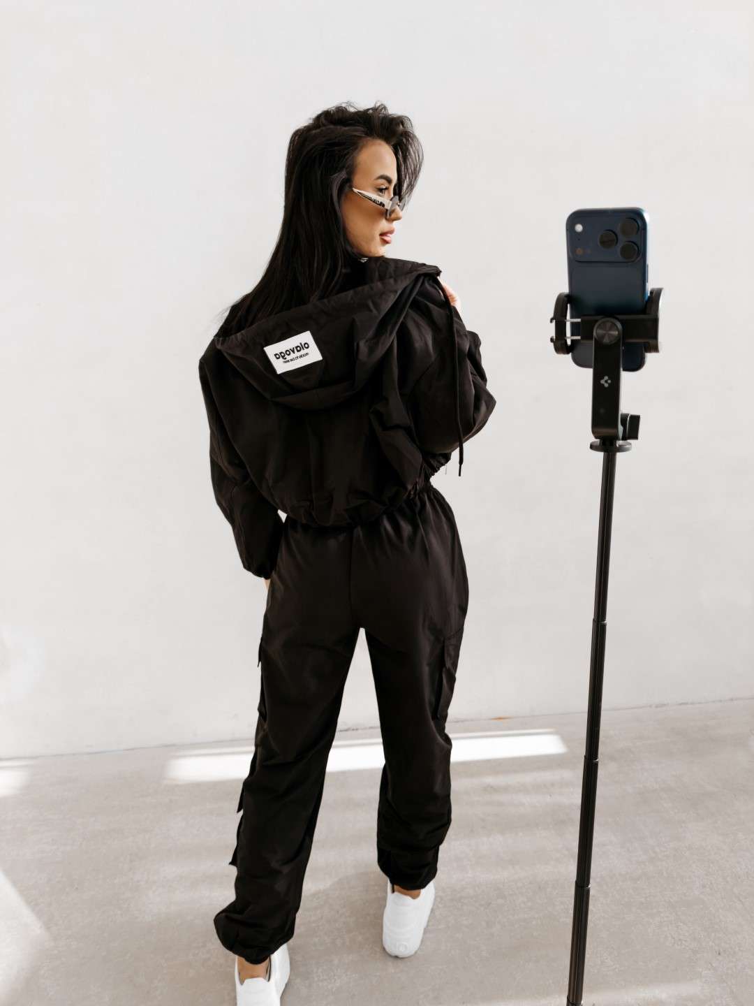 Kombinezon o dopasowanym, modelującym kroju wykonany z wysokiej jakości elastycznego. Model z długim rękawem i wysokim kołnierzem zapinanym na suwak. Kontrastowe lampasy wzdłuż rękawów i nogawek. Subtelne logo marki OLAVOGA z przodu.