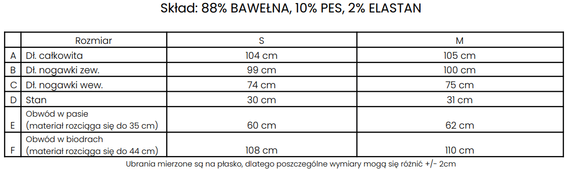 Model z kieszeniami po bokach oraz regulacją przy nogawkach w formie troczków.