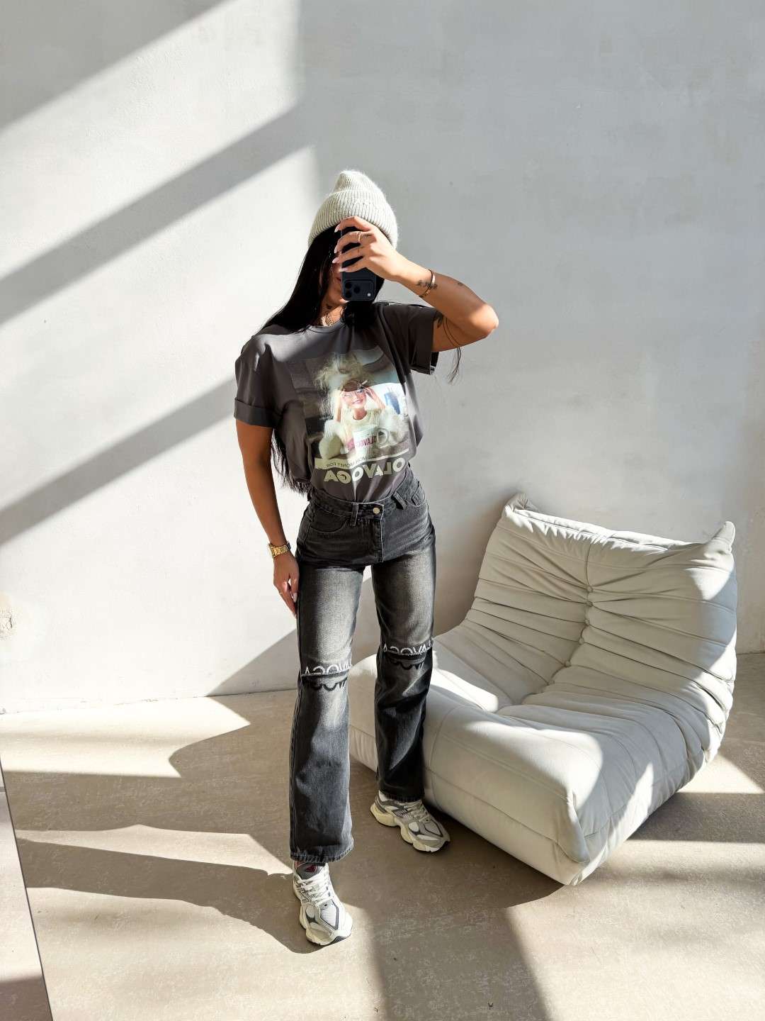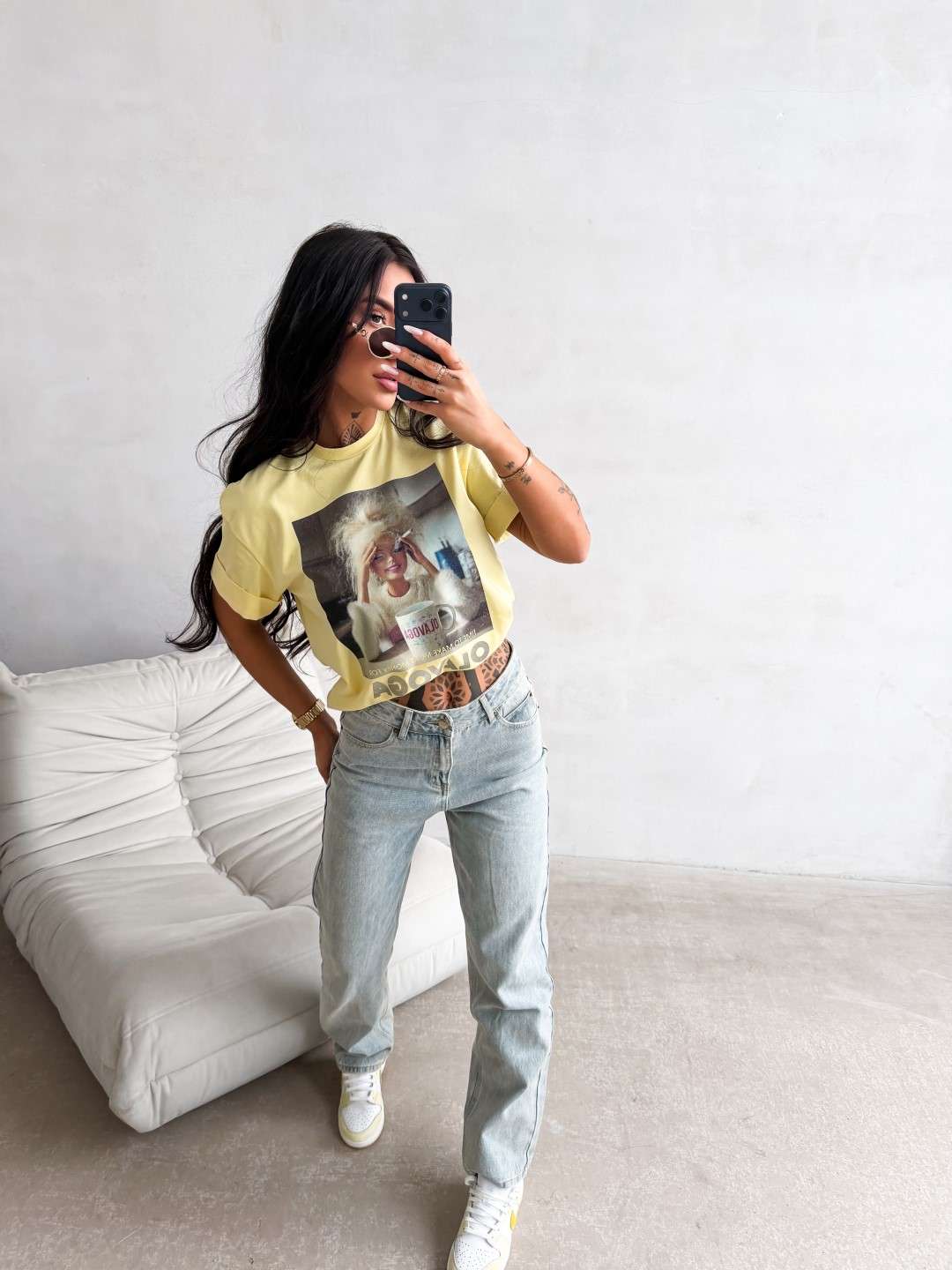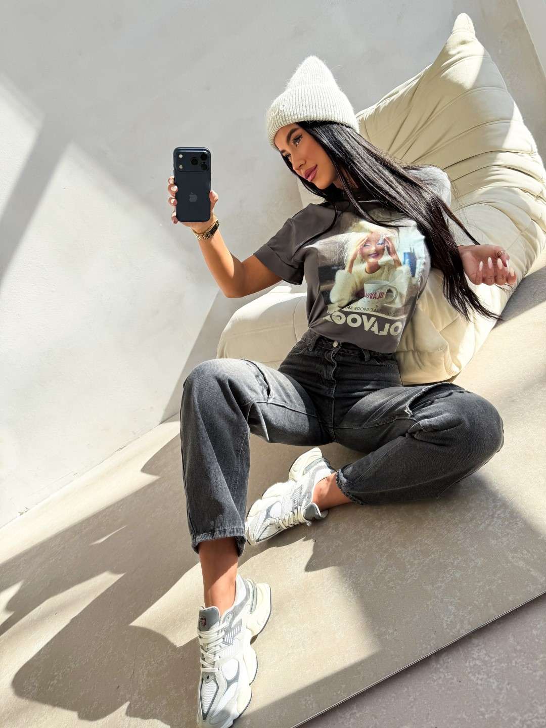 T-shirt o swobodnym kroju z krótkim rękawem i klasycznym, okrągłym dekoltem. Wykonany z miękkiej, przyjemnej w dotyku tkaniny. Z przodu duży nadruk graficzny z motywem Barbie oraz napisem OLAVOGA i hasłem.